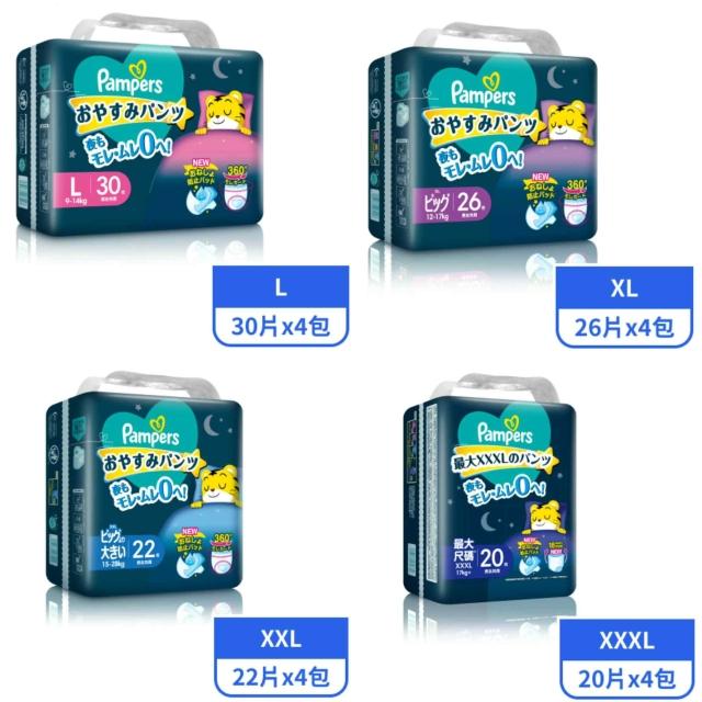 幫寶適Pampers 巧虎安睡褲 L-XXXL 嬰兒褲型紙尿褲/尿布/夜用拉拉褲 1箱/2箱/4箱組(褲型紙尿褲)