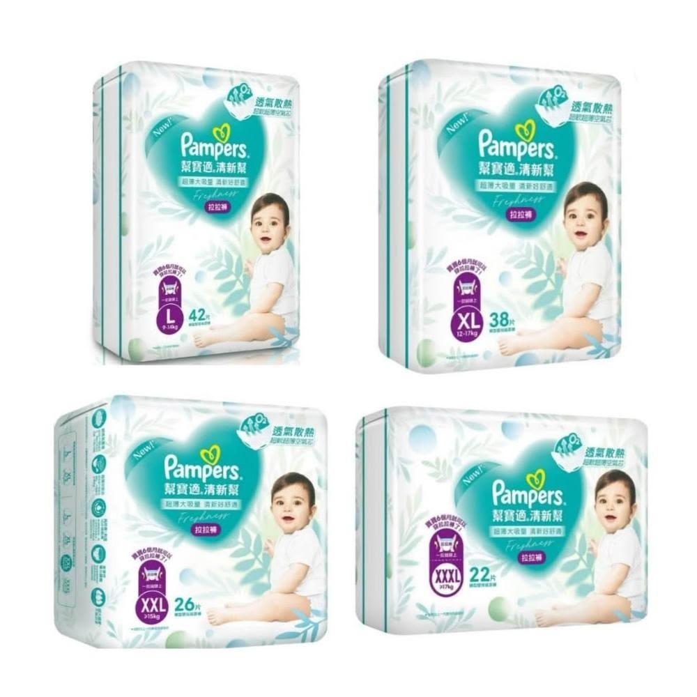 幫寶適清新幫 拉拉褲 L-XXXL 嬰兒褲型紙尿褲/尿布1箱/2箱組(超吸超軟超薄)