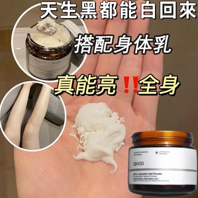 提亮膚色 淡化痘印維生素C抗氧化 100%左旋VC粉 美白去黃 曬後修護黑 QHOO維生素C粉 美白精華粉 護膚品