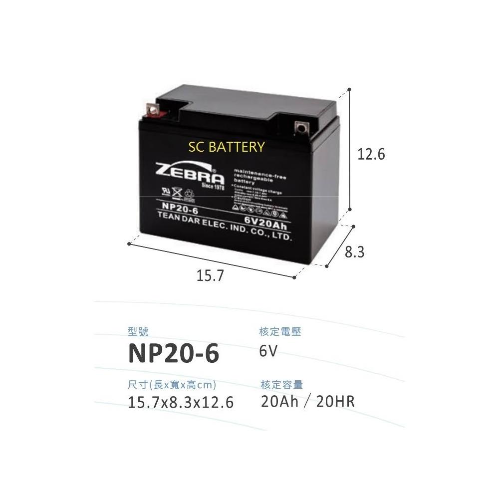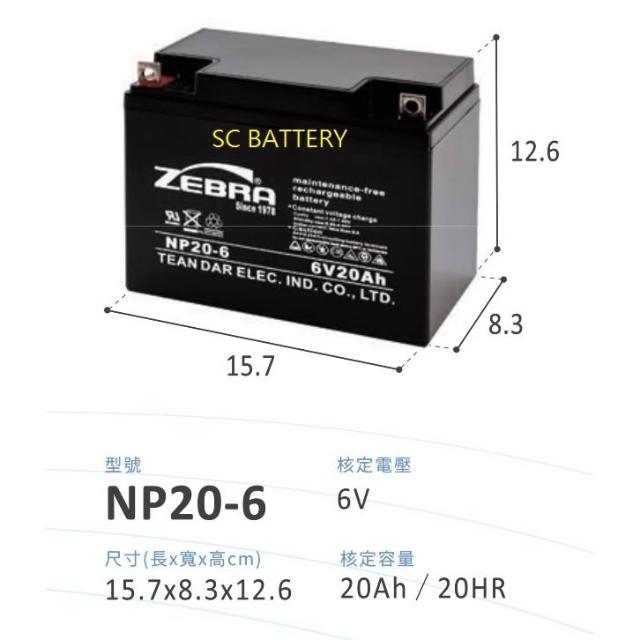 ZEBRA 斑馬牌定電流電池NP20-6 6V 20Ah UPS電池/同規格替代WP20-6 / 6V20AH
