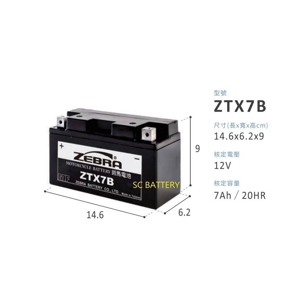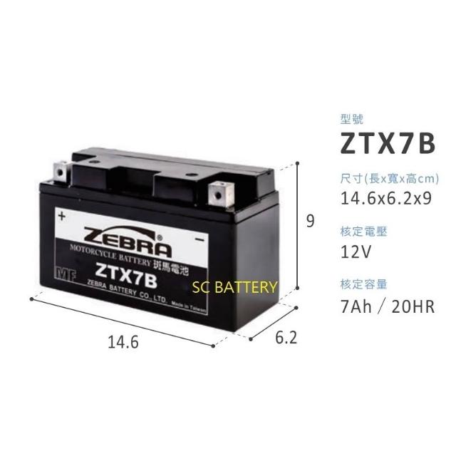 ZEBRA 斑馬牌即用式機車7B電池/新品已充飽電 直接安裝 替代YT7B-BS/GT7B-BS/ZTX7B 七號薄型電池