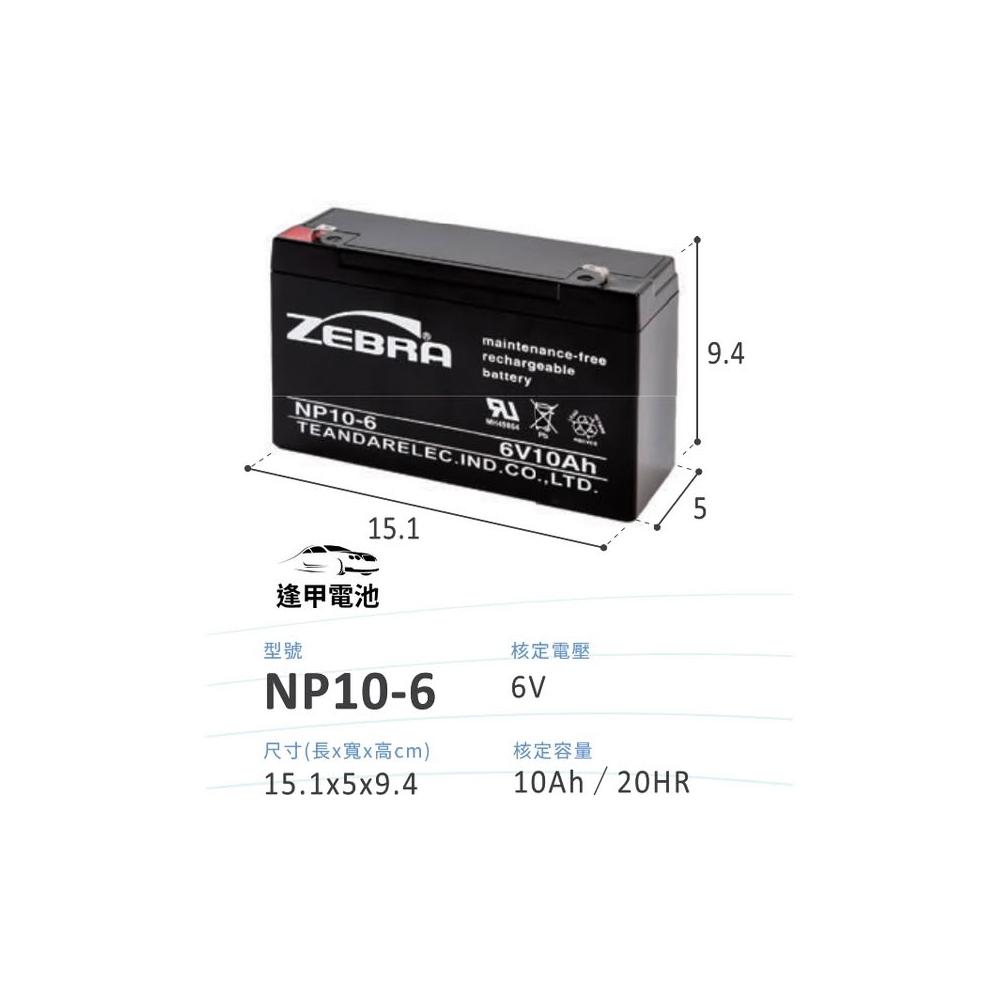 ZEBRA 斑馬牌玩具車電池 NP10-6 6V 10AH/20HR 同尺寸取代3-FM-10 童車電池