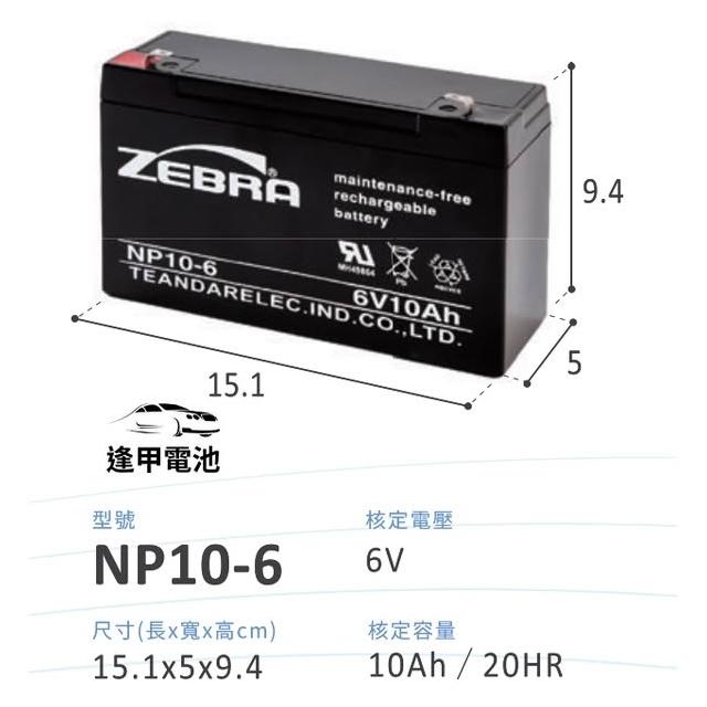 ZEBRA 斑馬牌玩具車電池 NP10-6 6V 10AH/20HR 同尺寸取代3-FM-10 童車電池
