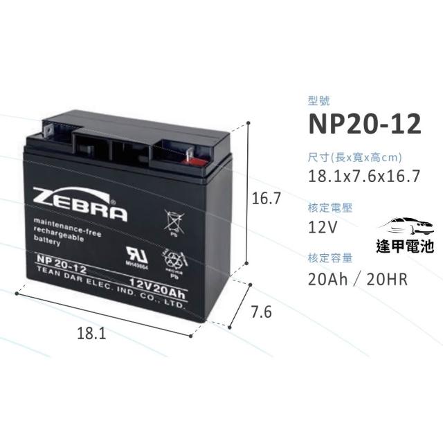 ZEBRA 斑馬牌救援電匠電池 NP20-12 12V20AH 同尺寸取代NP18-12 WP20-12