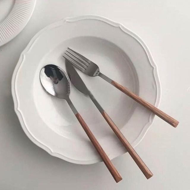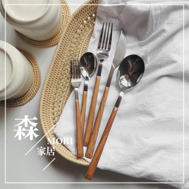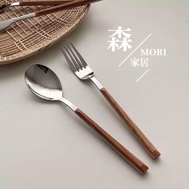 YOKI不鏽鋼餐具 仿木餐具「5星好評!」304不鏽鋼餐具 餐具組 刀叉組 甜品叉 甜品勺 湯匙 餐刀 叉子 仿木柄不銹鋼餐具