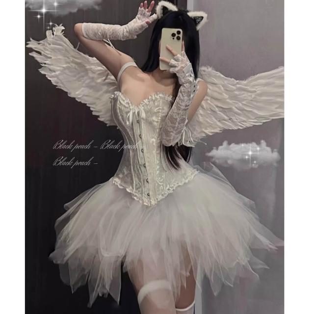 °• 𝘔𝘖𝘔𝘖𝘕𝘈 •°🫧現貨🫰BLACK&WHITE 黑白天使性感純欲束身馬甲 澎裙修身顯瘦套裝