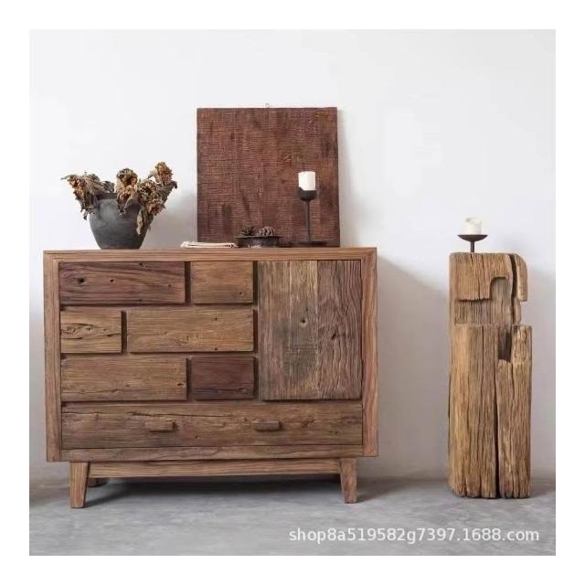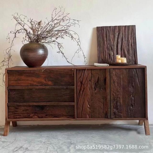 免運大促 老榆木餐邊櫃家居客廳裝飾博古架落地收納櫃實木可移動茶水櫃邊櫃
