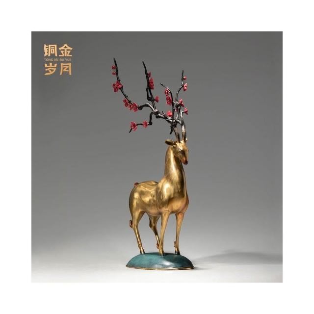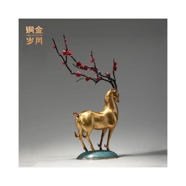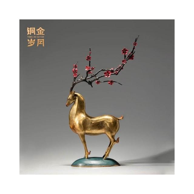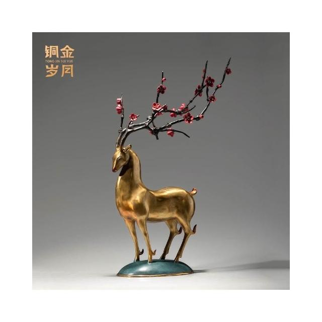 熱銷銅金歲月梅花福鹿黃銅工藝品家居客廳玄關梅花鹿擺件辦公室裝飾品