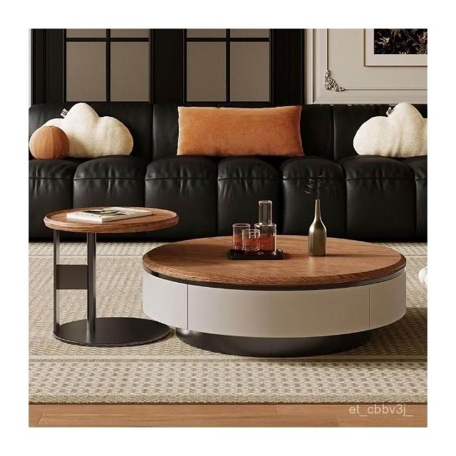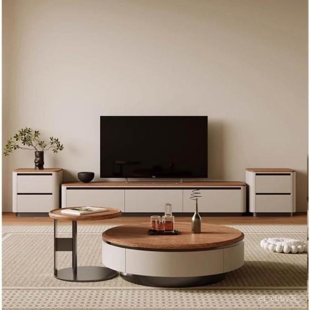 衚桃色圓茶幾組閤 茶幾組閤 北歐現代巖闆茶幾 輕奢茶幾桌組閤 影視廳櫃 客廳桌 茶桌 桌子