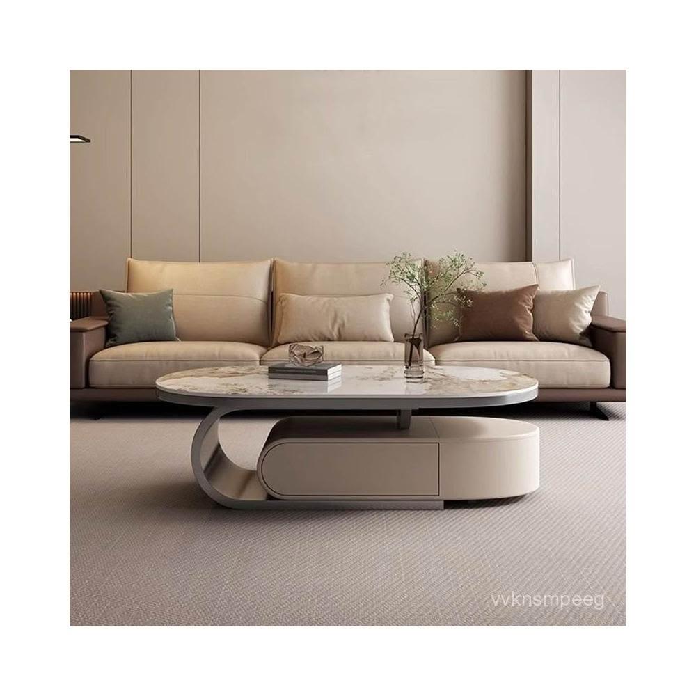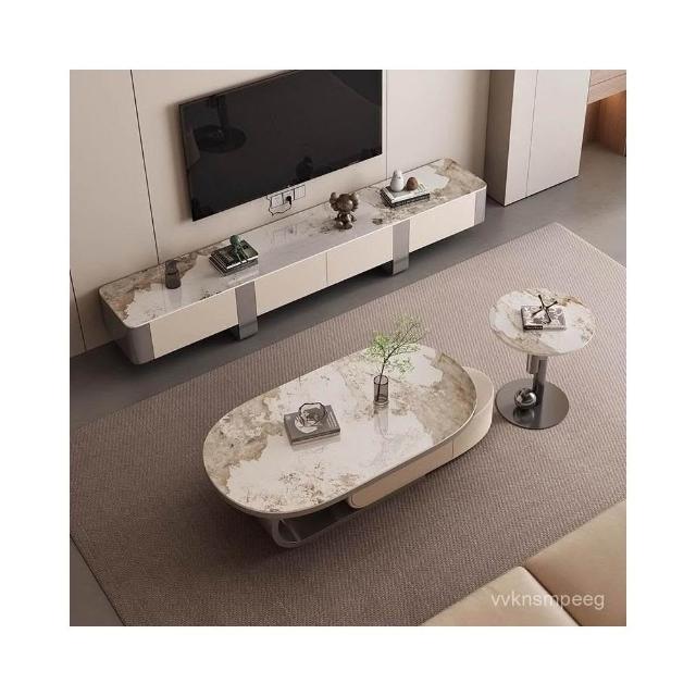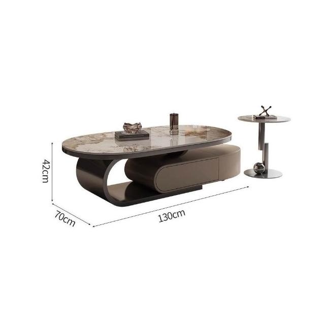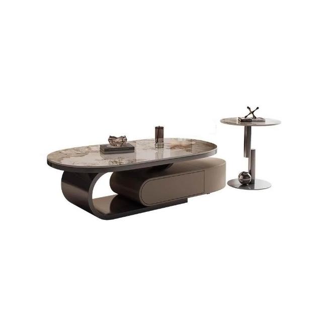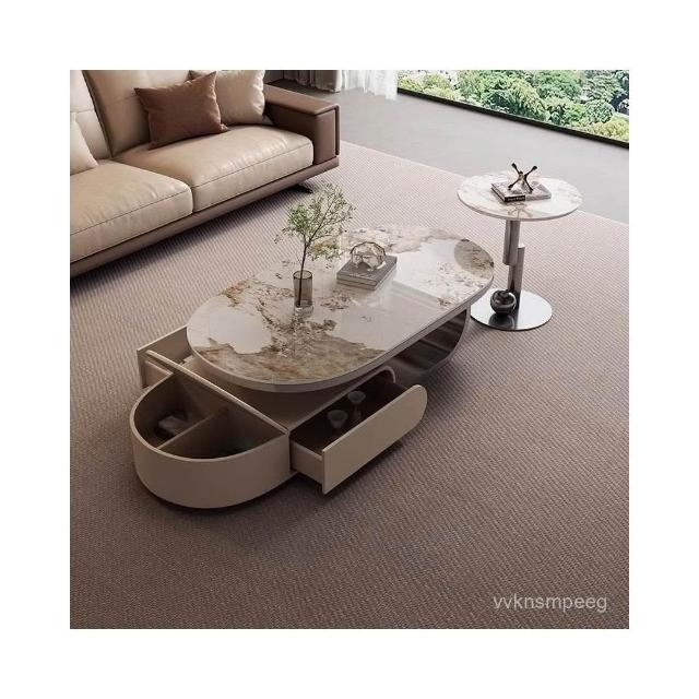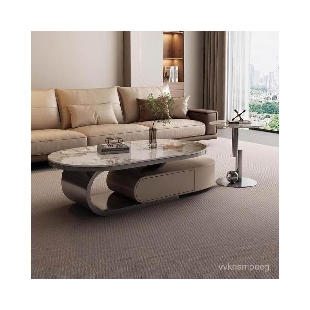 意式輕奢 現代簡約巖闆橢圓形組閤茶幾 客廳家用 小戶型茶幾 客廳臥室茶幾