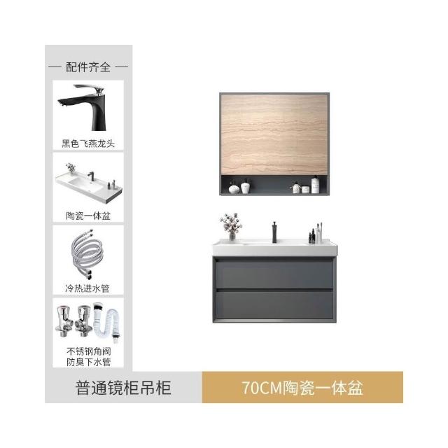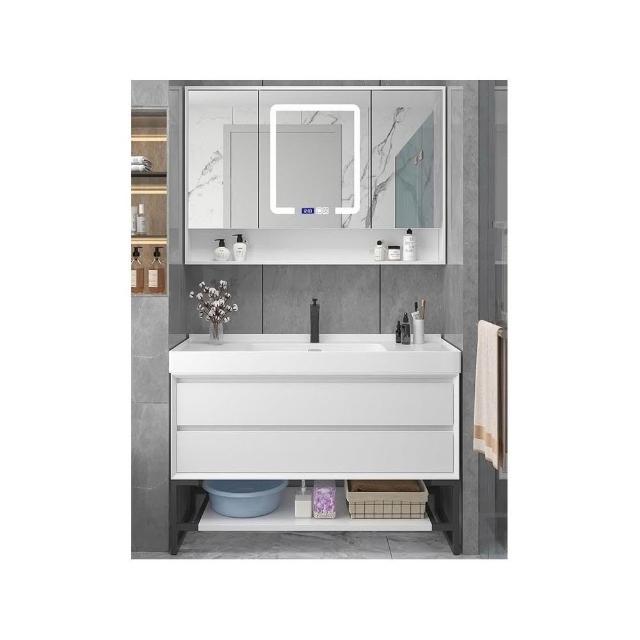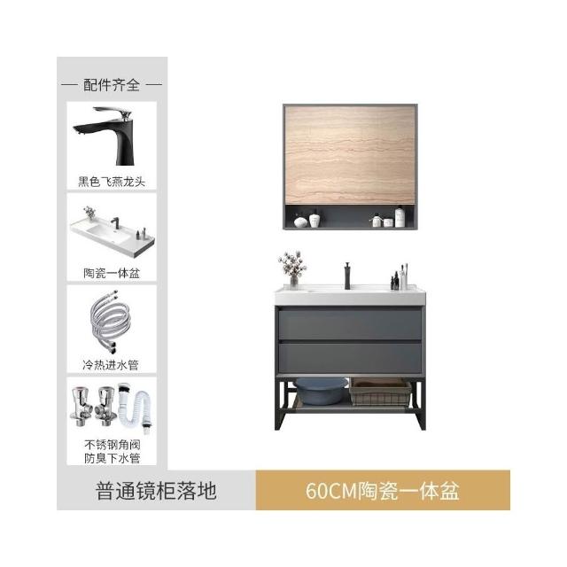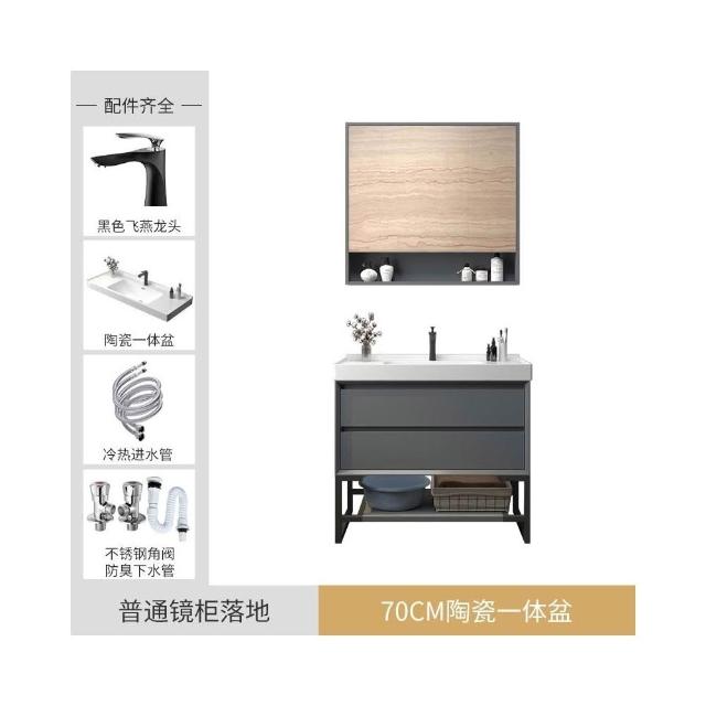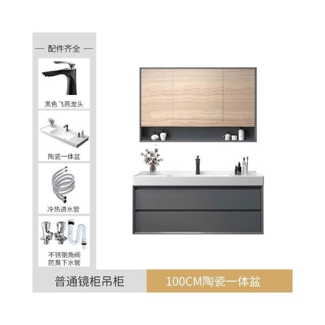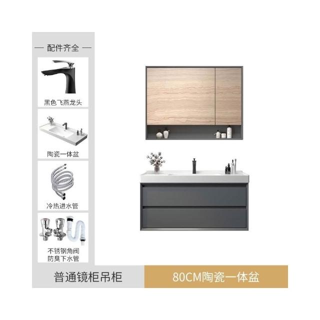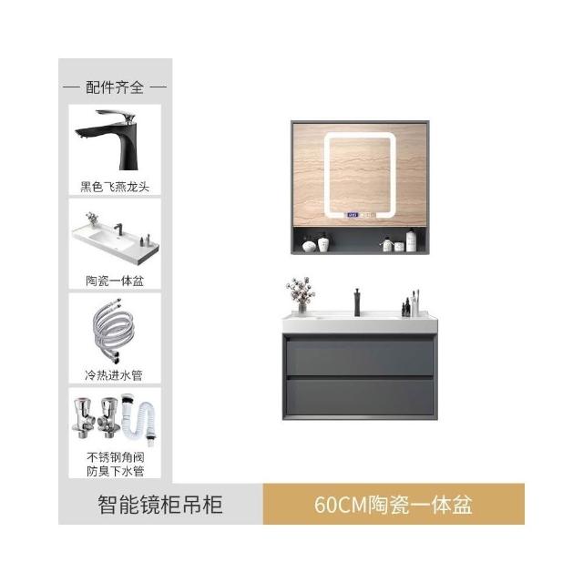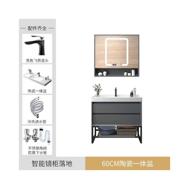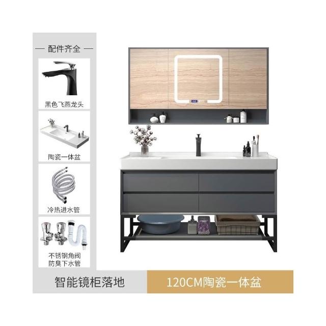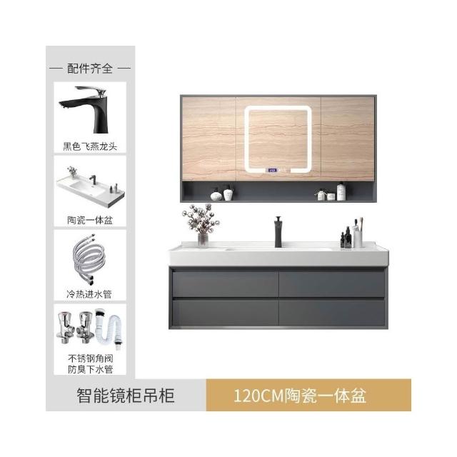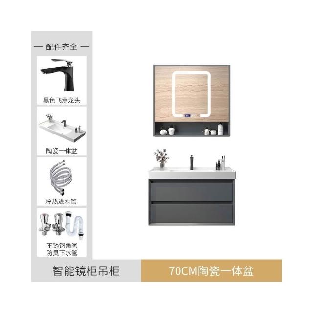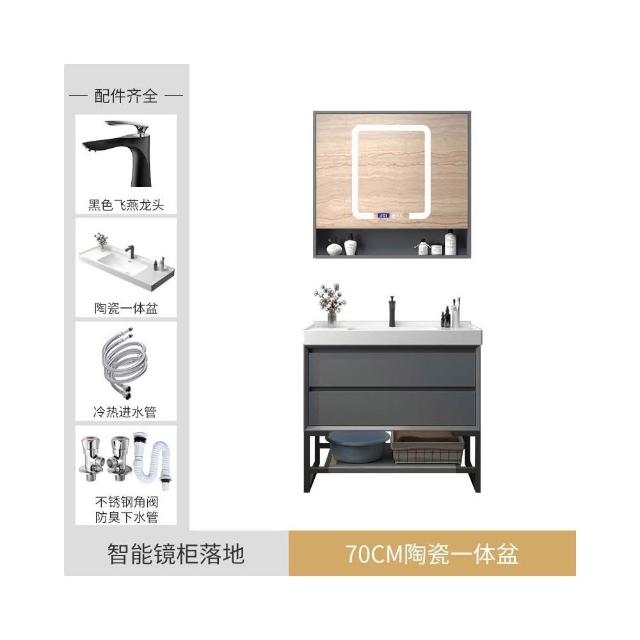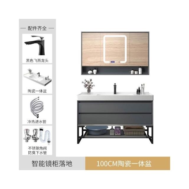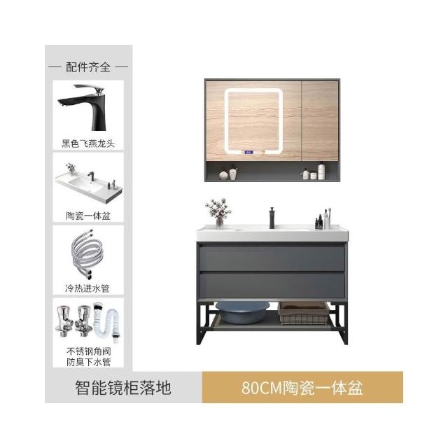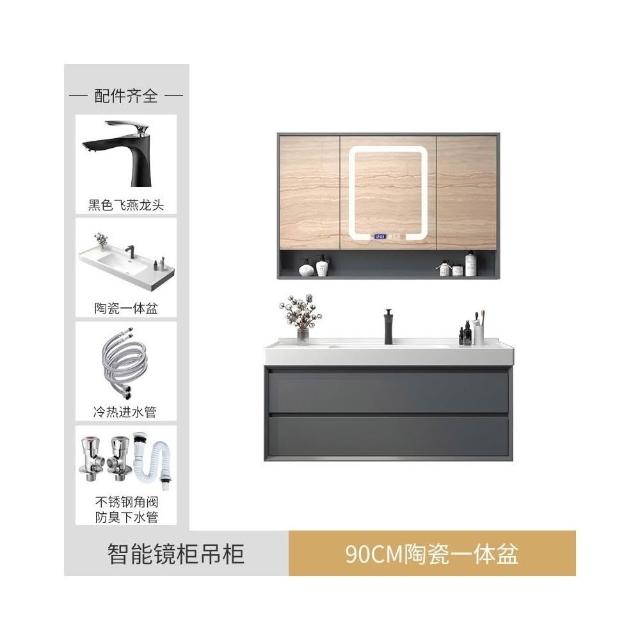 輕奢浴室柜 陶瓷一體盆 衛浴室柜組合 衛生間洗漱臺智能洗手池洗臉臺盆鏡柜