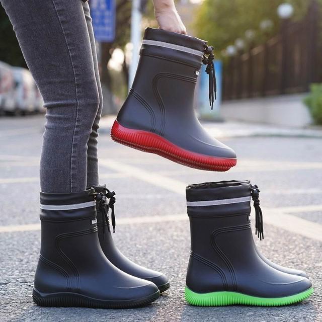 新款雨鞋男高檔短筒防雨防水鞋防滑加厚雨靴收口束口水靴工作膠鞋