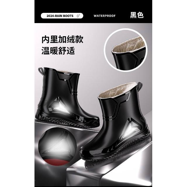 加厚雨鞋男款收口新款防水鞋户外水靴厨房防滑工作胶鞋加绒棉保暖