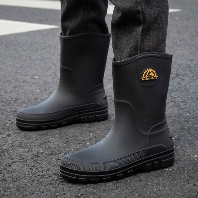 男士雨鞋中筒防滑防水鞋長筒軟底水靴厚底舒適廚房工地耐磨輕便鞋