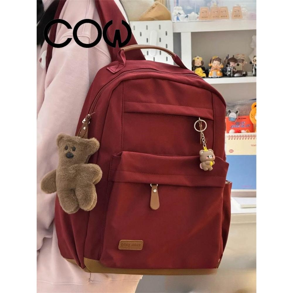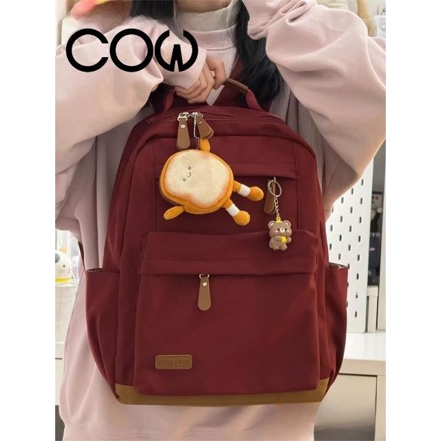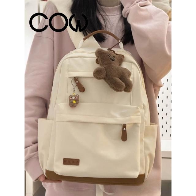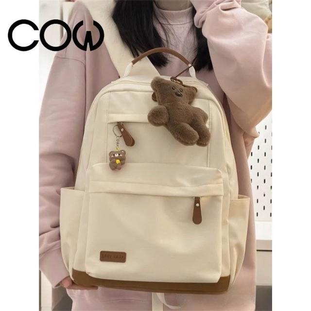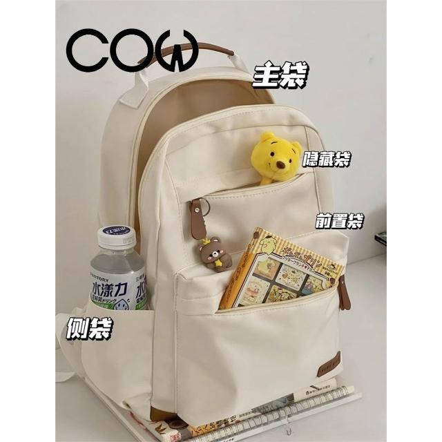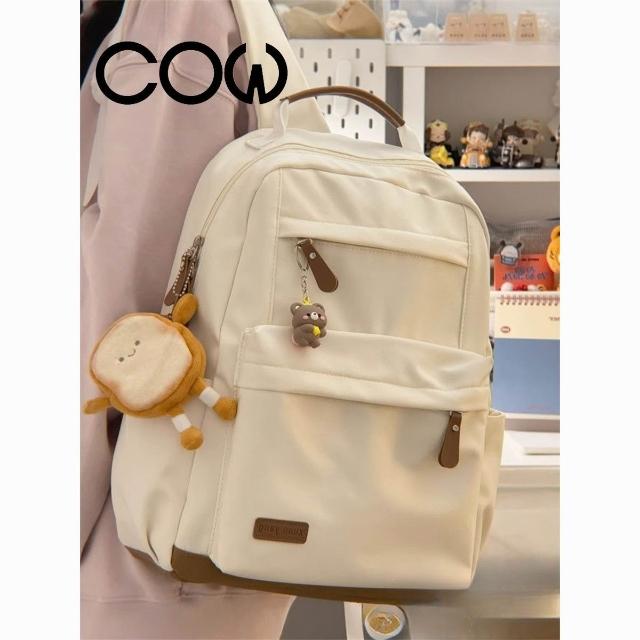 COW休閒百搭雙肩包女日系復古時尚通勤電腦旅行背包少女學生書包