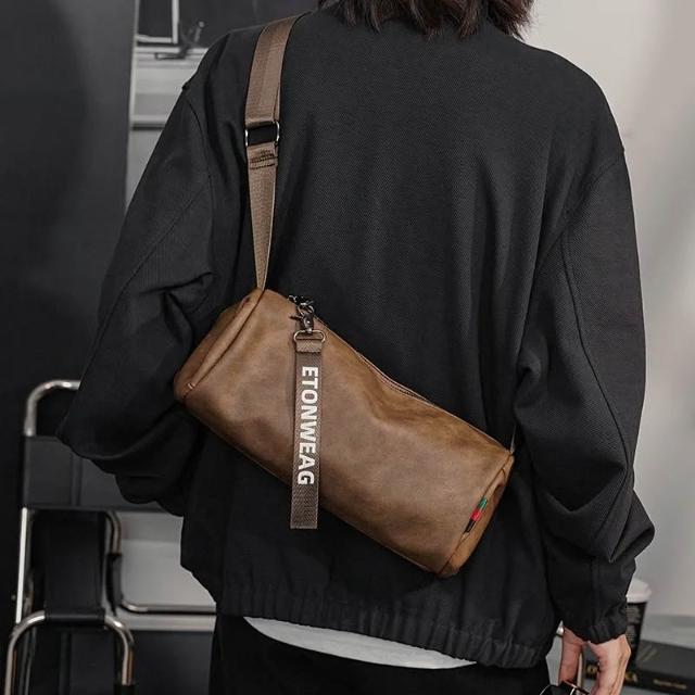 側肩包 斜肩包 斜挎包 胸包 肩背包男包休閒圓筒包小包包潮牌背包青年潮流休閒斜背包