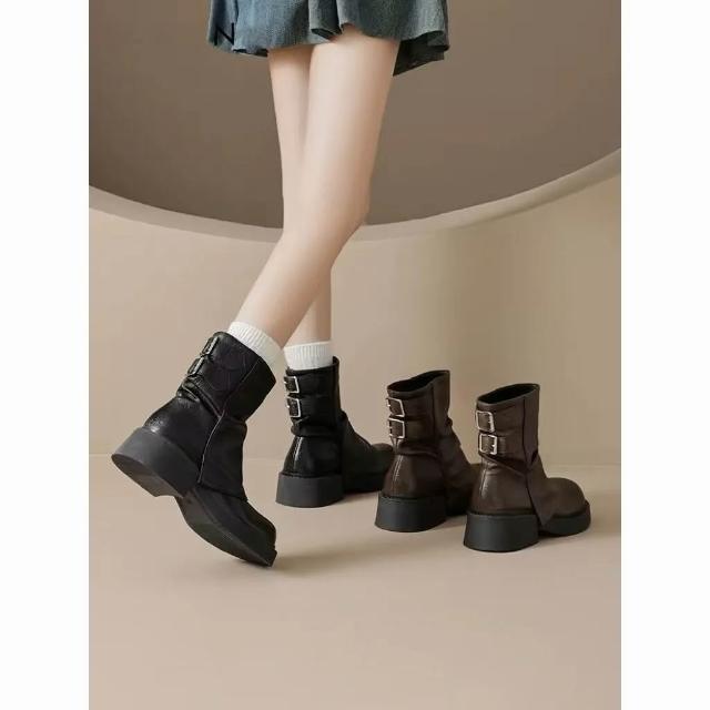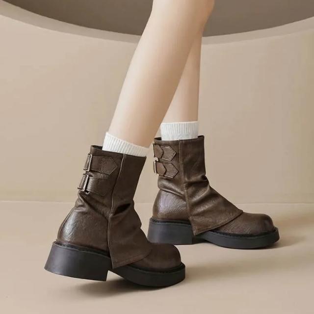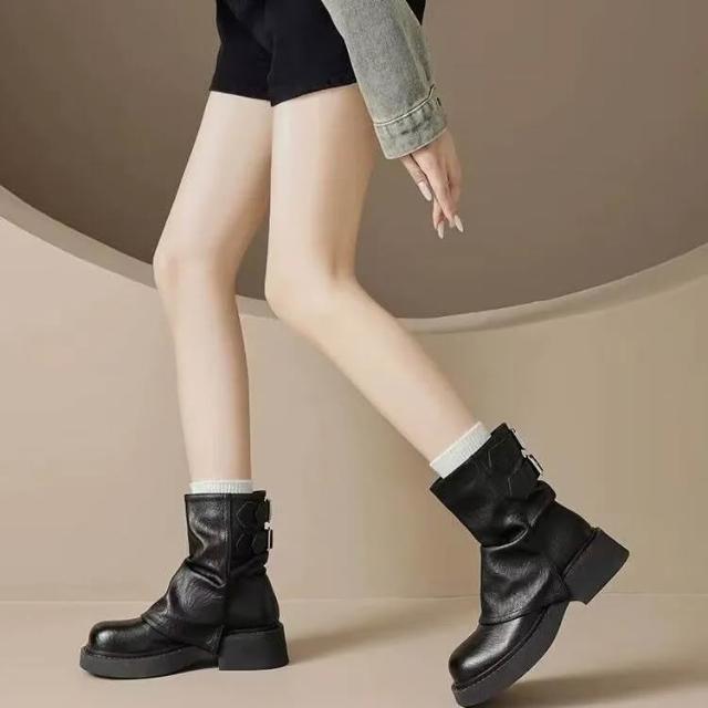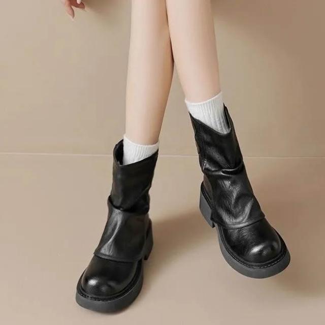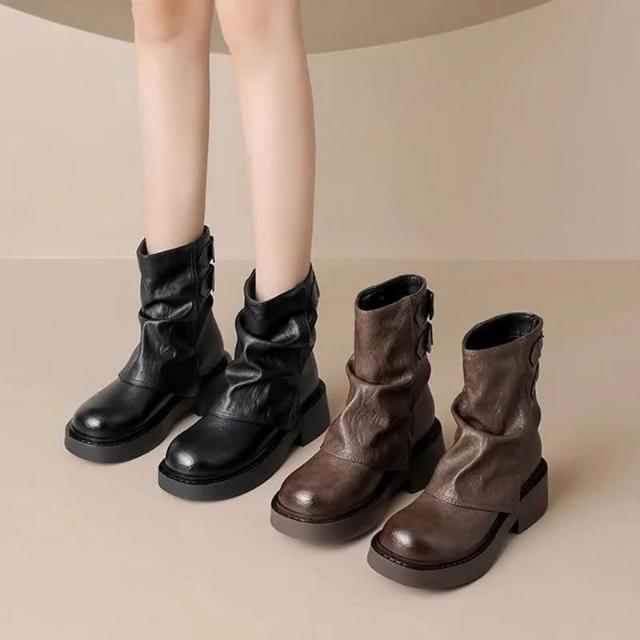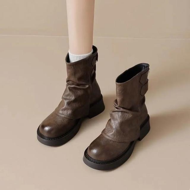 大尺碼女鞋美拉德復古堆堆短靴春秋新款厚底褲管馬丁靴