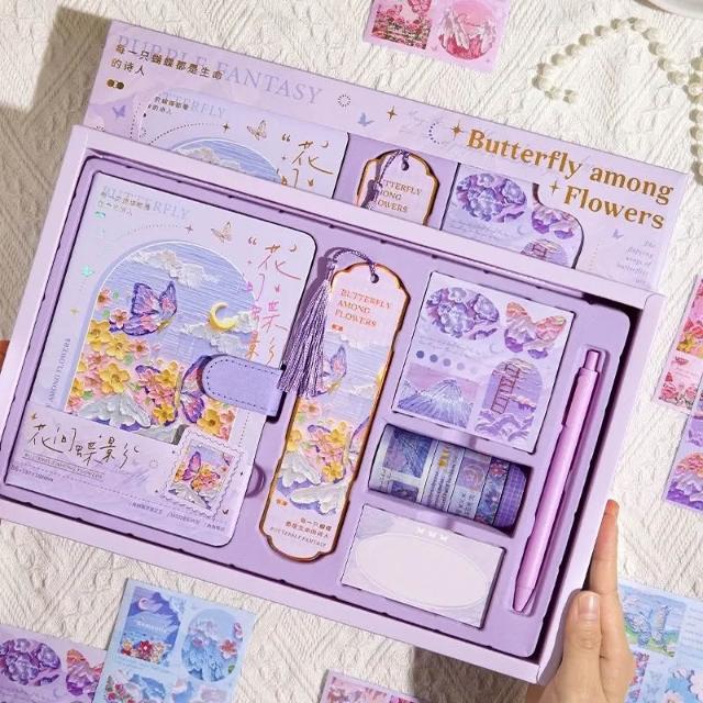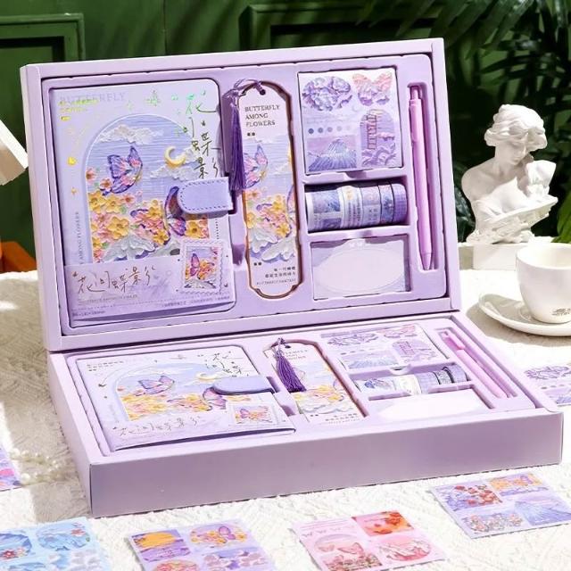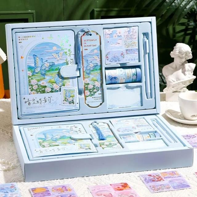 油畫手帳本禮盒組高顏值ins風學生筆記本子禮物素材全套日記本