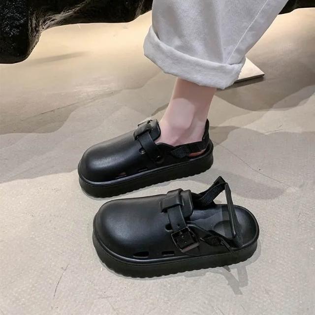 全防水穆勒鞋 半拖鞋 兩穿EVA超輕包頭涼拖鞋 厚底兩穿半拖新中式兩穿後帶可拆卸新款韓系超軟底包頭拖鞋女外穿5cm厚底