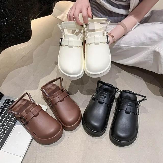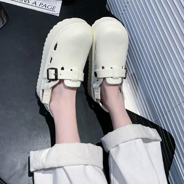 全防水穆勒鞋 半拖鞋 兩穿EVA超輕包頭涼拖鞋 厚底兩穿半拖新中式兩穿後帶可拆卸新款韓系超軟底包頭拖鞋女外穿5cm厚底