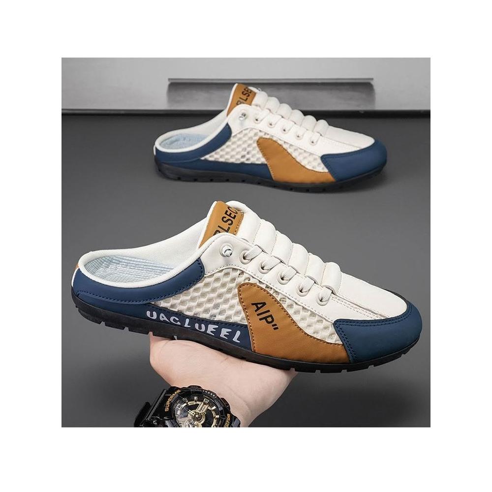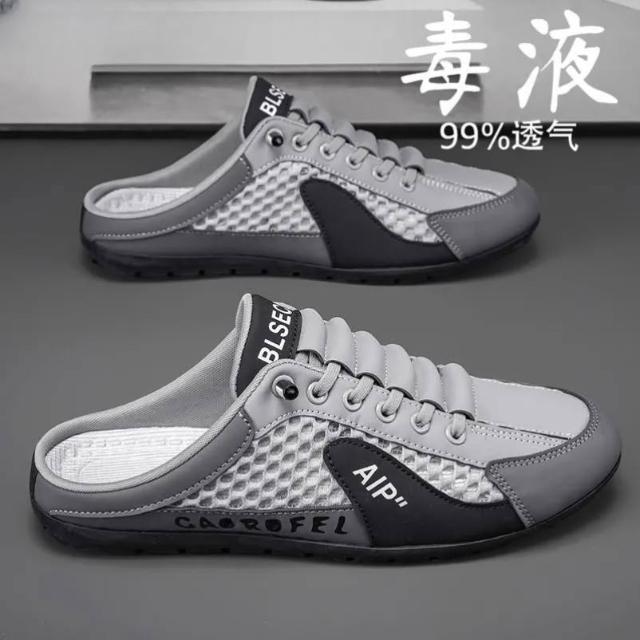 半拖鞋男款 包頭拖鞋男士夏季外穿透氣網面一腳蹬半托無后跟休閑沙灘涼鞋