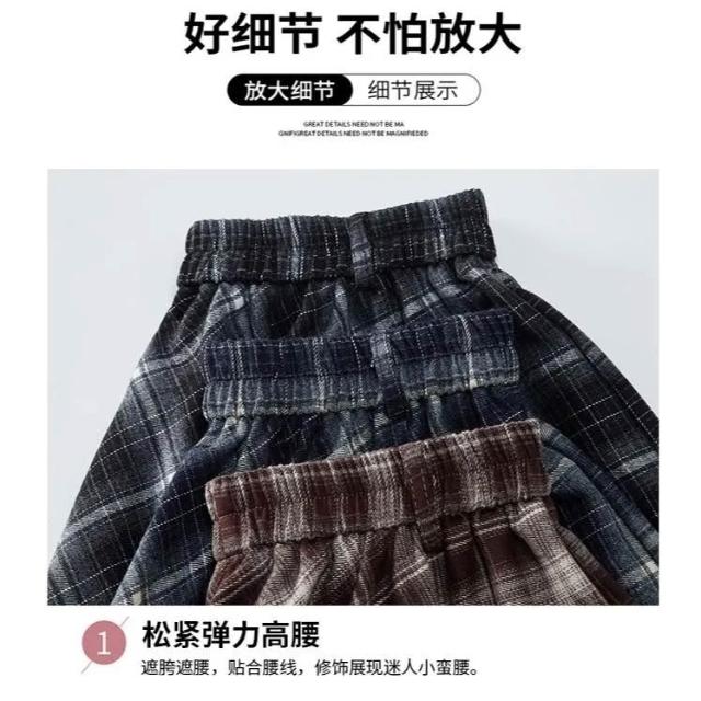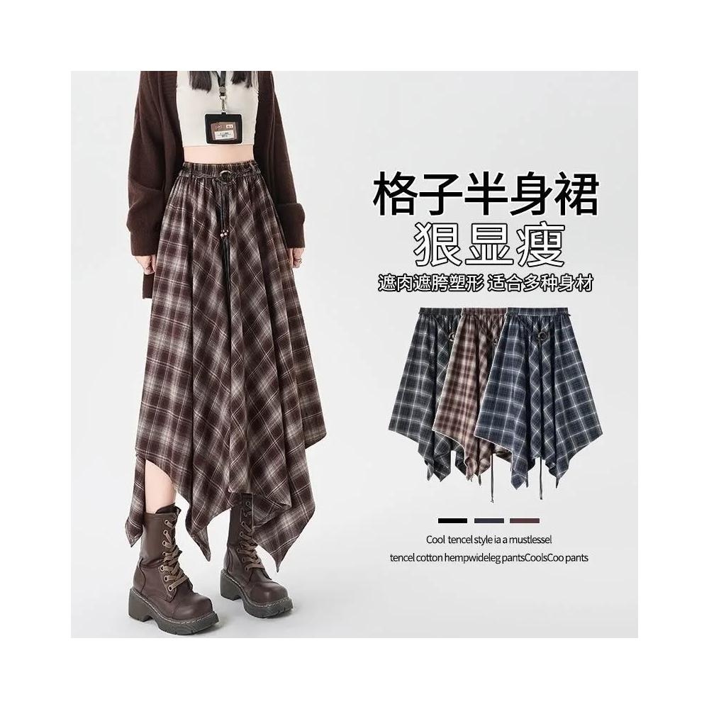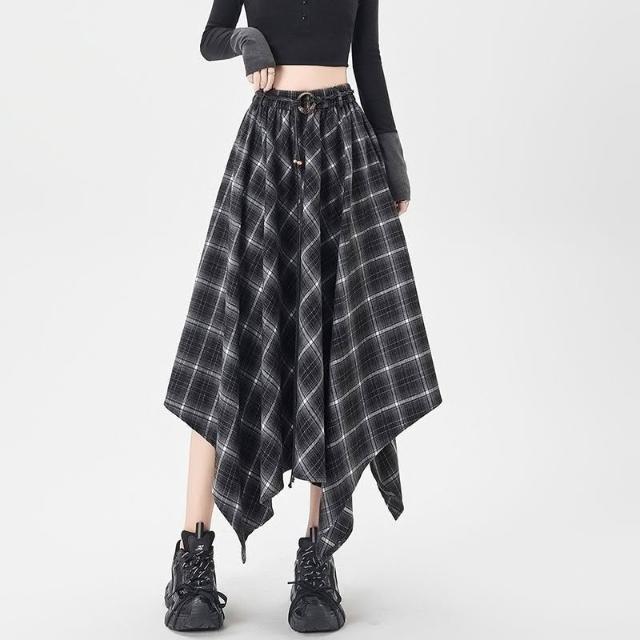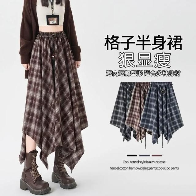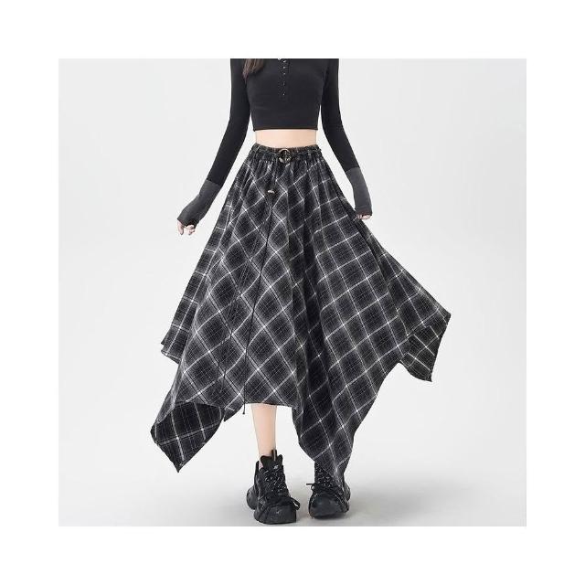 半身裙復古格紋格紋半身裙秋季新款高腰不規則顯瘦裙設計長裙廢土