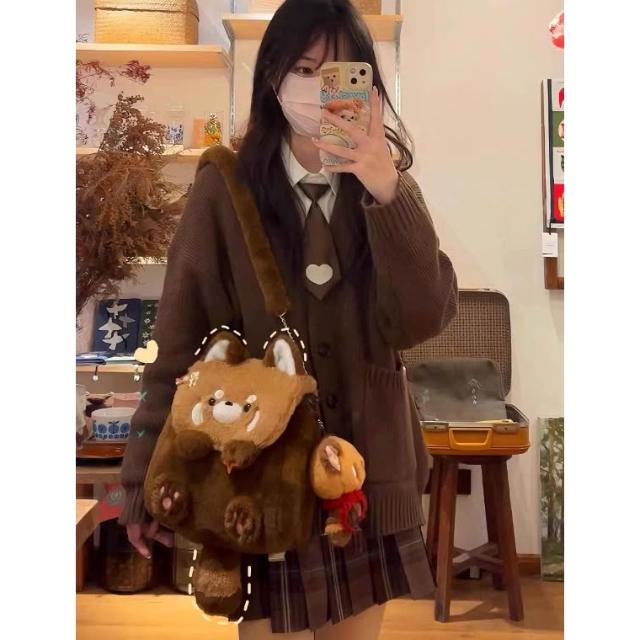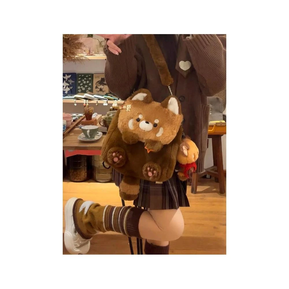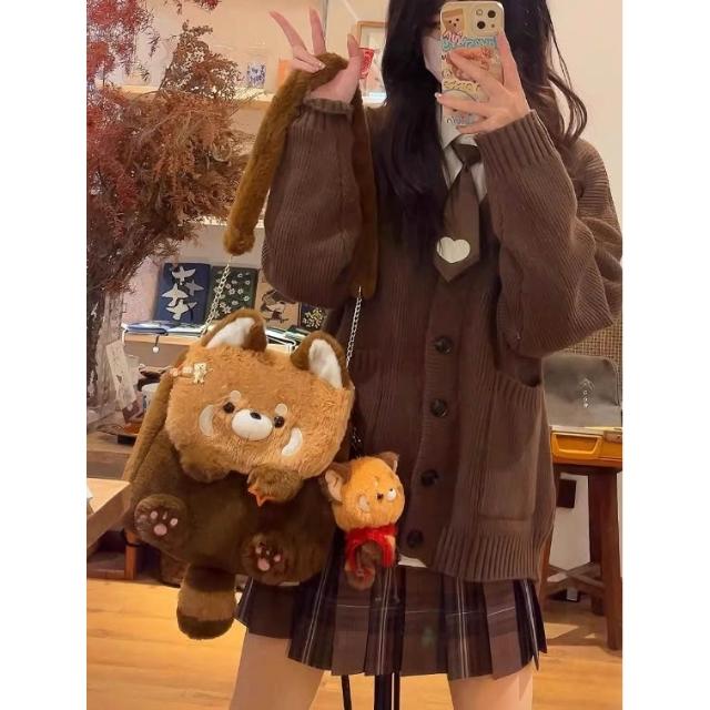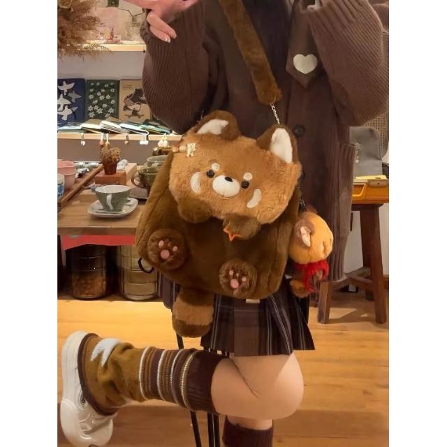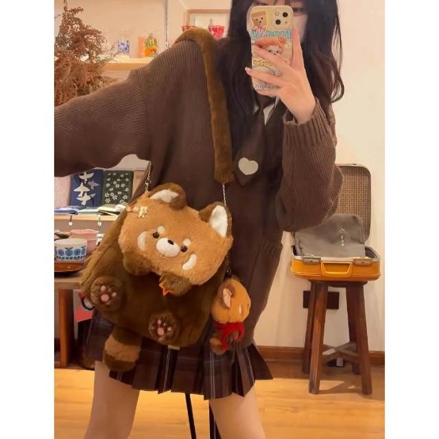 小浣熊貓毛絨背包玩偶斜挎包公仔卡通可愛少女雙肩娃娃包
