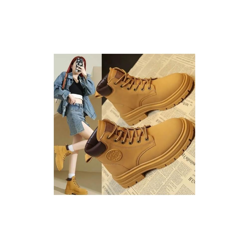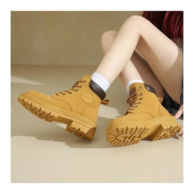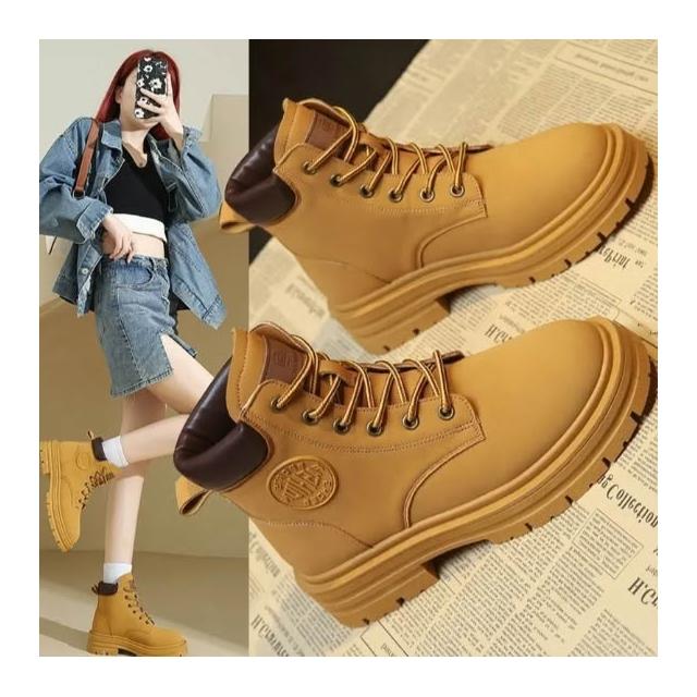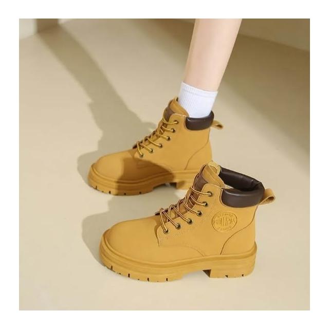 踢不爛大黃靴女高筒鞋美式復古馬丁靴女款中幫戶外登山工裝靴子女