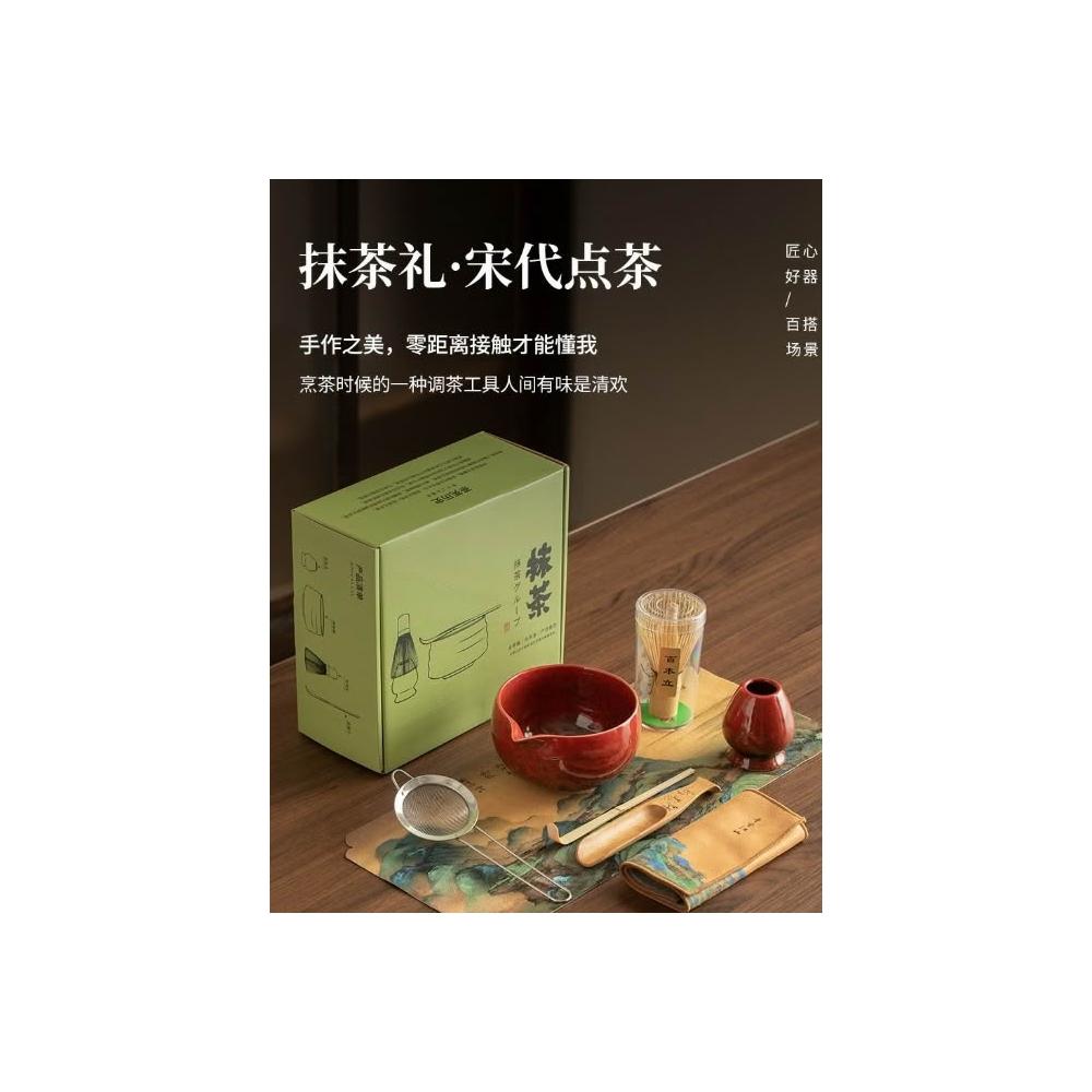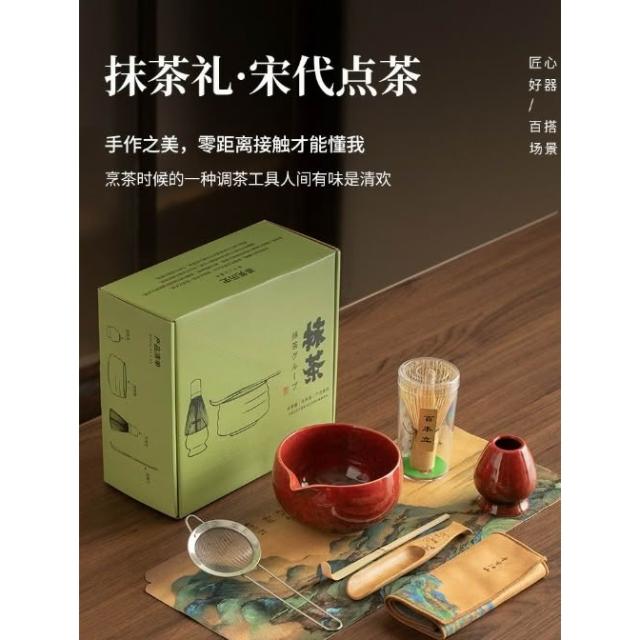 抹茶碗 宋代點茶工具8件套裝 盛抹茶碗 陶瓷日式 打抹茶用8件套裝 茶筅 竹子抹茶刷 百本立 宋代點茶道禮盒