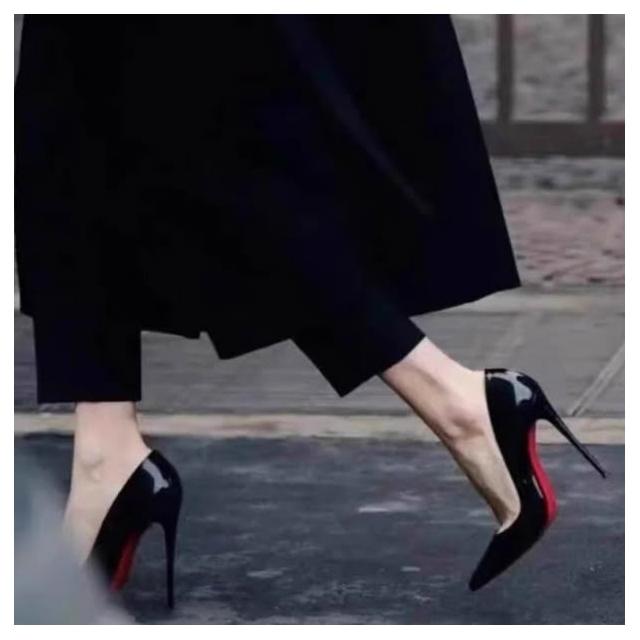 黑色側空高跟鞋女細跟新款秋冬不累腳紅底單鞋