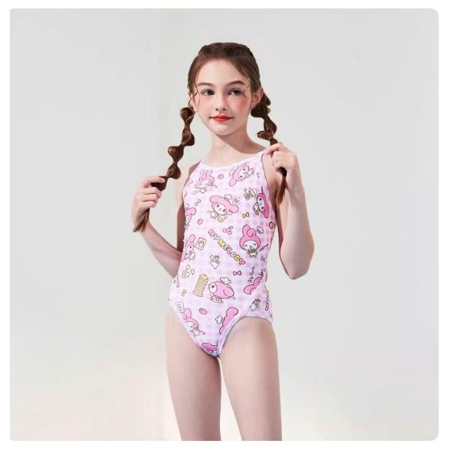 洲克兒童泳衣連體三角專業游泳訓練zoke美樂蒂女孩速乾耐氯游泳衣