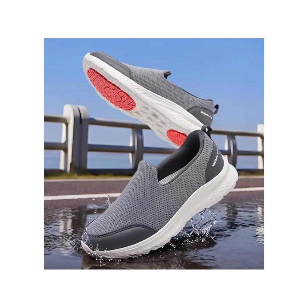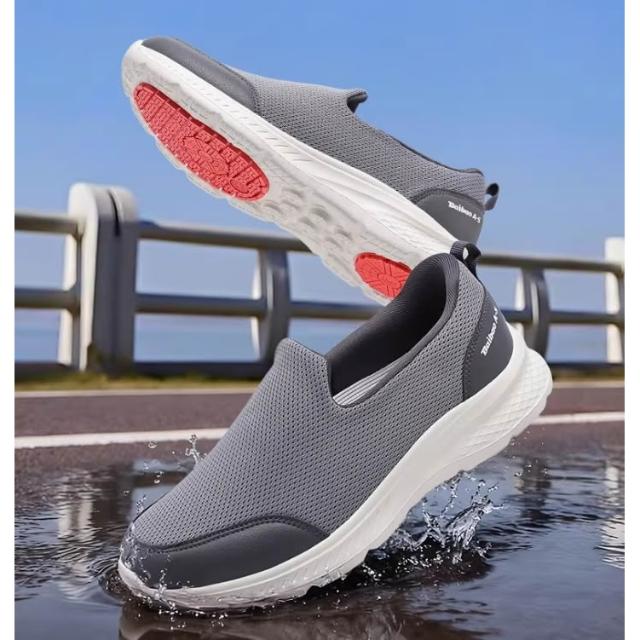 百寶世界紀錄止滑鞋中老人健步鞋防滑軟底休閒鞋一腳蹬爸爸散步鞋