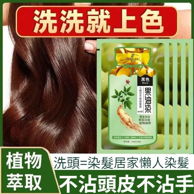 首品果油染獨立袋裝泡泡染髮染髮劑植物萃取男女通用在家遮蓋白髮