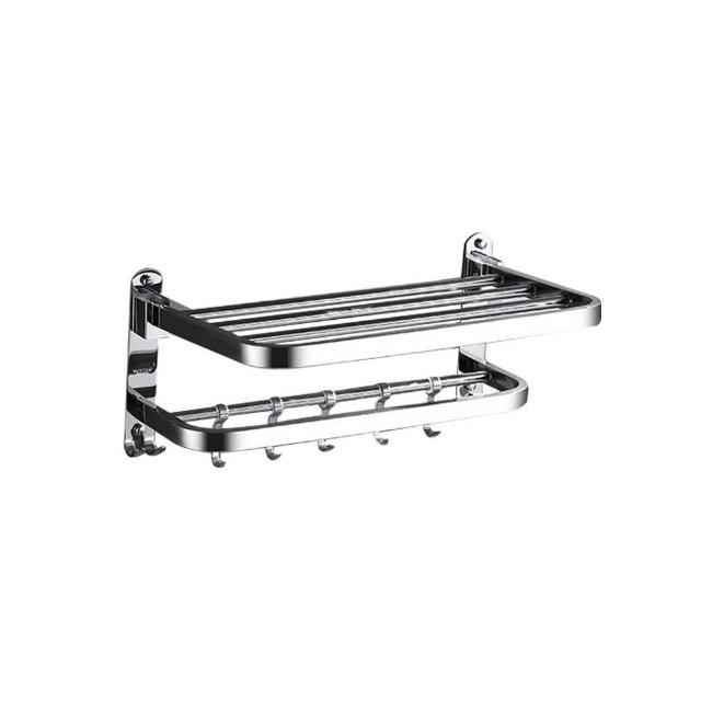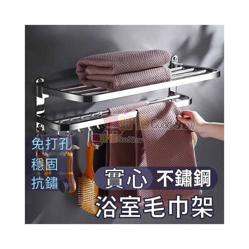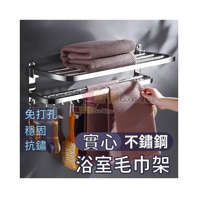 免打孔不鏽鋼毛巾架|可摺疊浴巾架|雙層毛巾置物架|浴室收納掛架