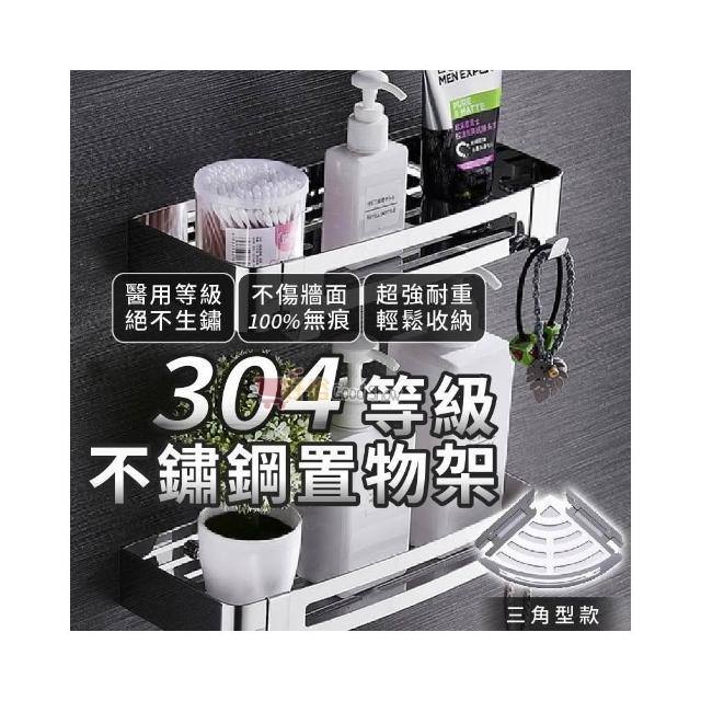 304不鏽鋼浴室置物架|三角/四方無痕安裝|多層收納層架|浴室收納神器