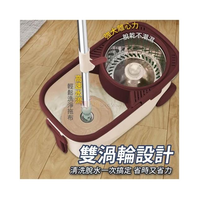 ★雙渦輪旋轉拖把★ 1桿1桶+2拖布 手壓式免手洗 帶輪不鏽鋼拖把 乾濕兩用清潔神器