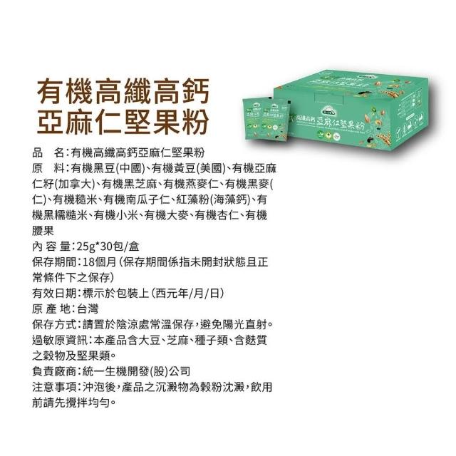 統一生機統一生機 有機高纖高鈣亞麻仁堅果粉(25gx30包/盒)(超商請勿超過4盒)