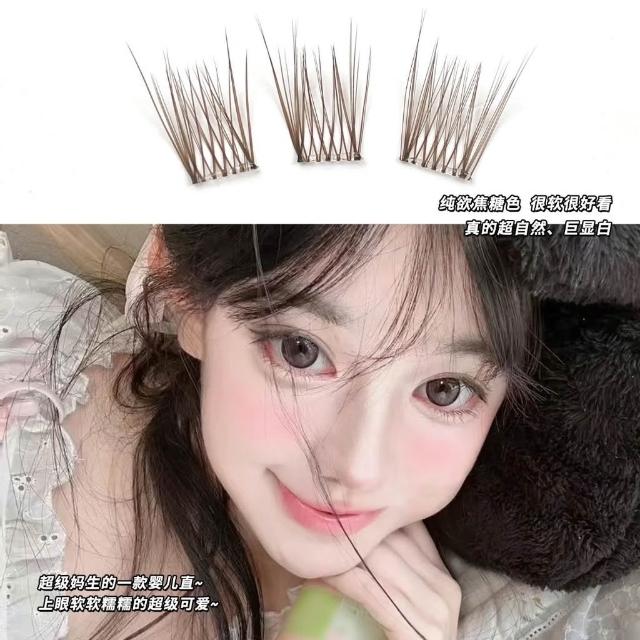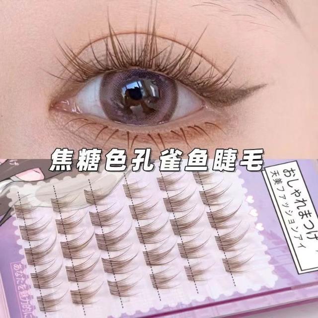 《台灣現貨🐱‍🏍》焦糖色孔雀魚免膠假睫毛棕色魚尾三部曲自然分段女