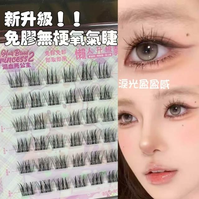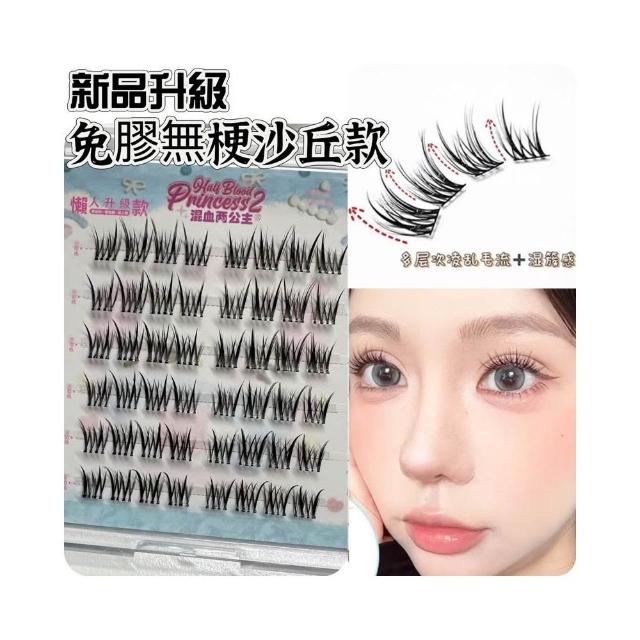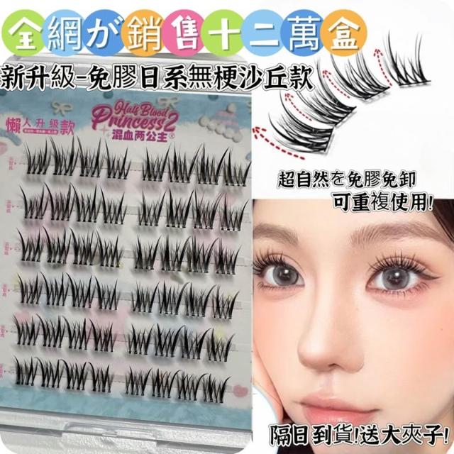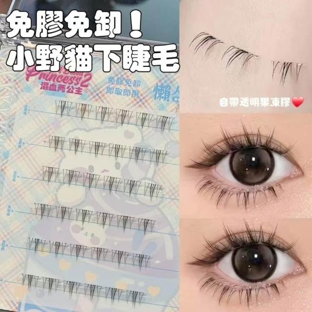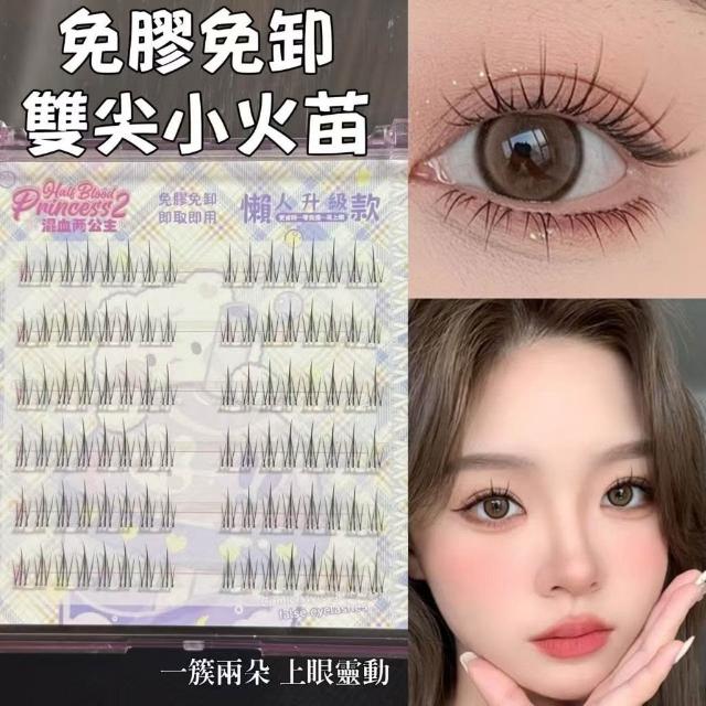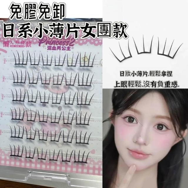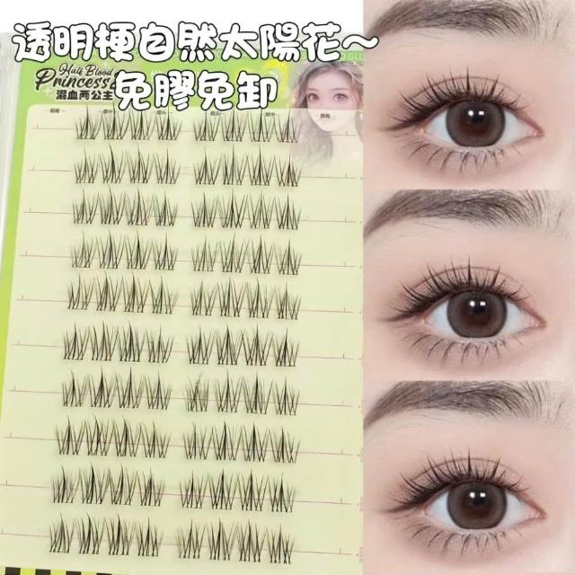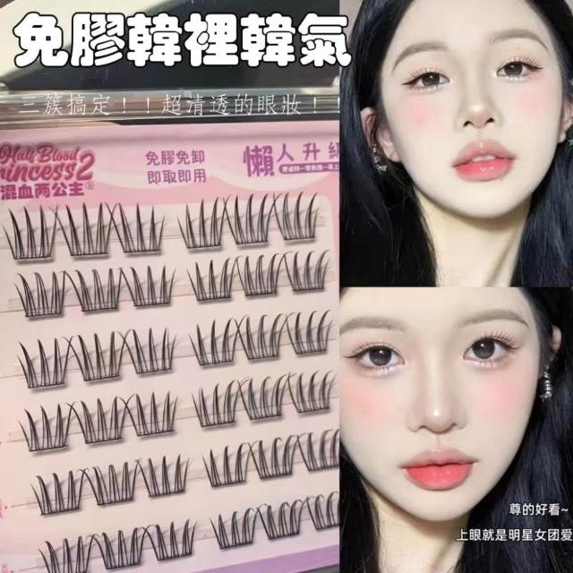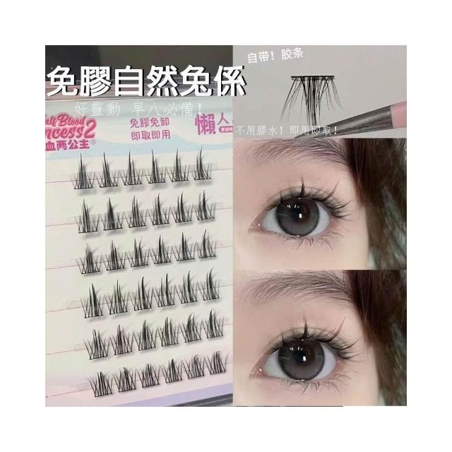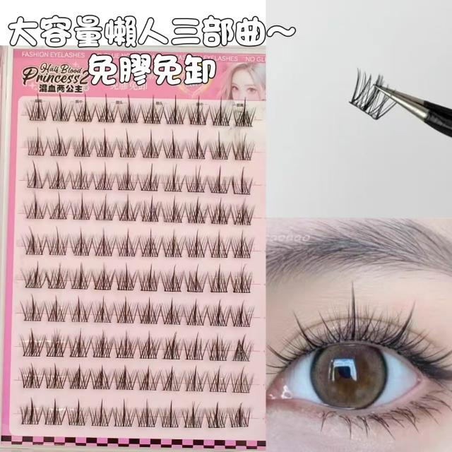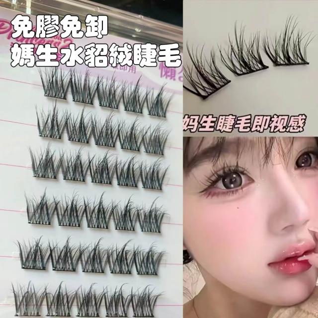 《台灣隔日到貨🚀》新品睫毛送膠水+夾子免膠假睫毛分段好漫畵濃密睫毛速妝透明梗超自然自粘假睫毛仙子毛魚尾下睫毛單根嫁接