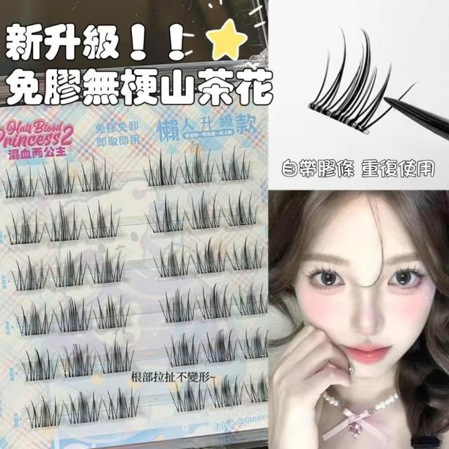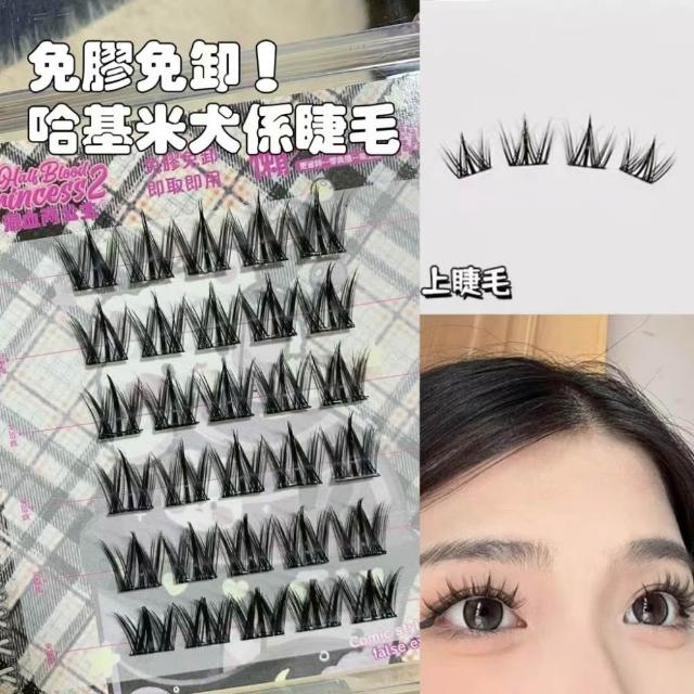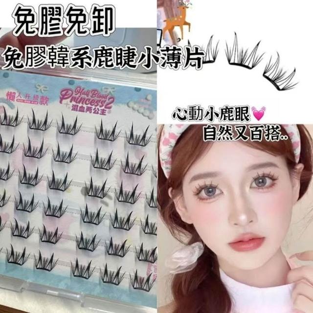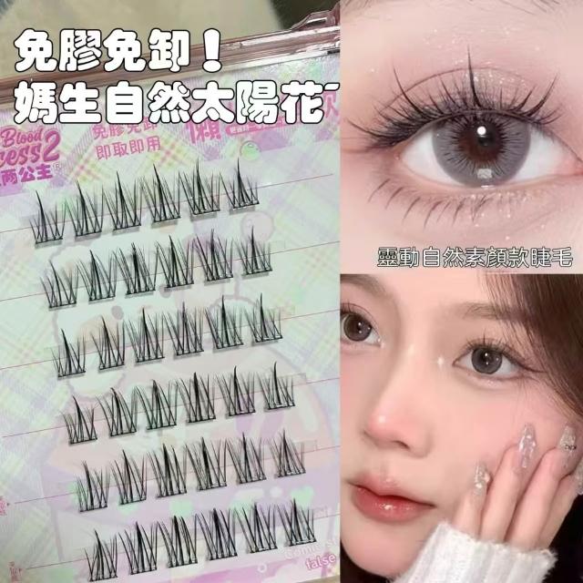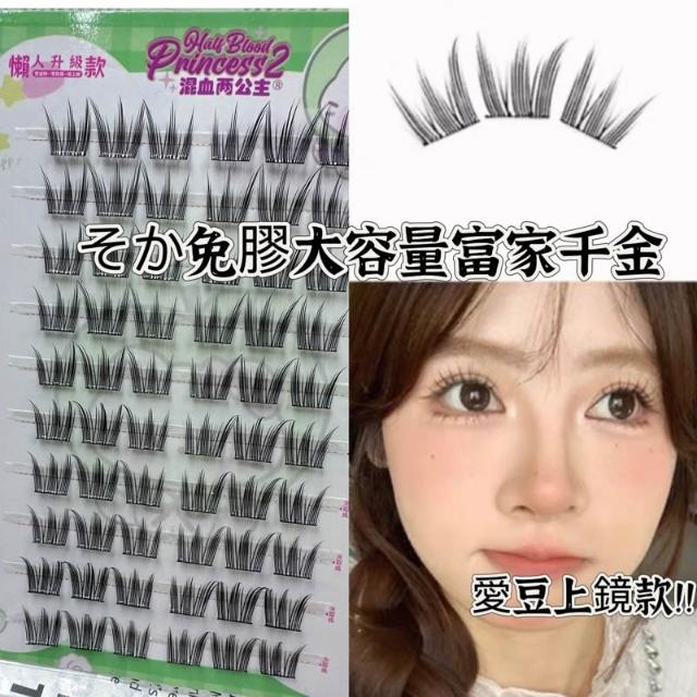 《台灣隔日到貨🚀》新品睫毛送膠水+夾子免膠假睫毛分段好漫畵濃密睫毛速妝透明梗超自然自粘假睫毛仙子毛魚尾下睫毛單根嫁接