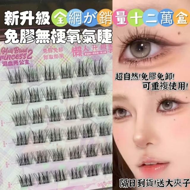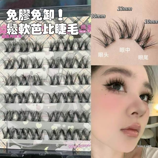 《台灣隔日到貨🚀》新品睫毛送膠水+夾子免膠假睫毛分段好漫畵濃密睫毛速妝透明梗超自然自粘假睫毛仙子毛魚尾下睫毛單根嫁接