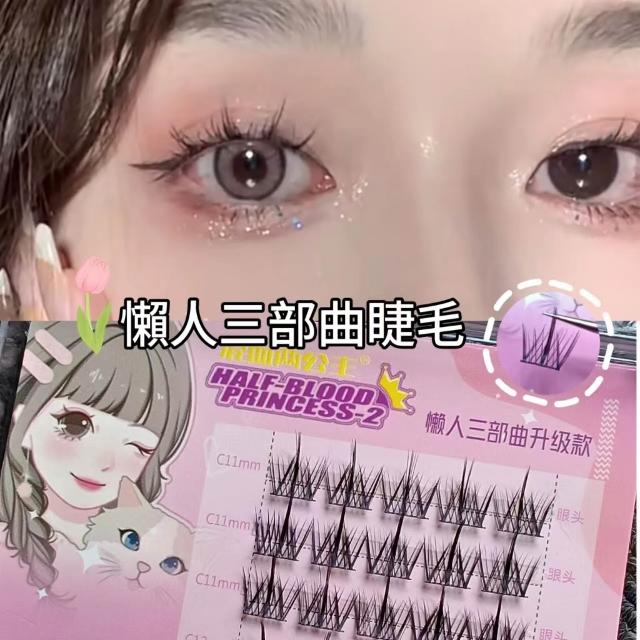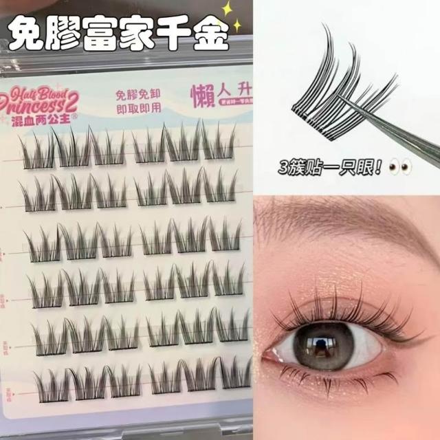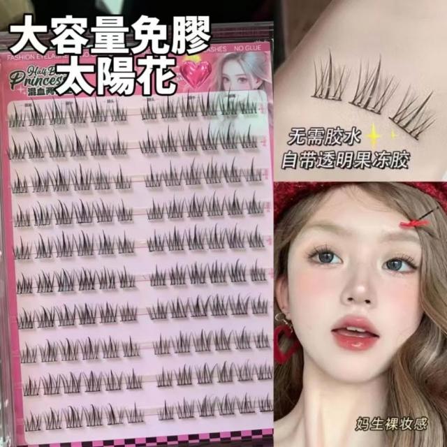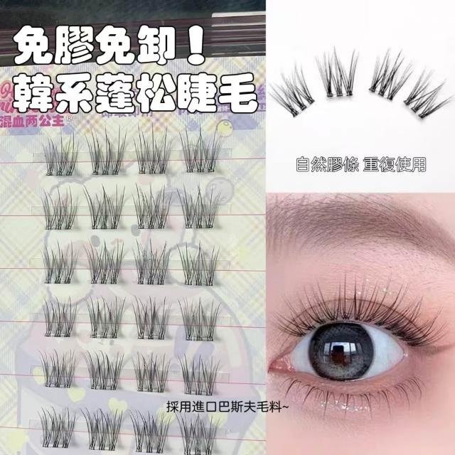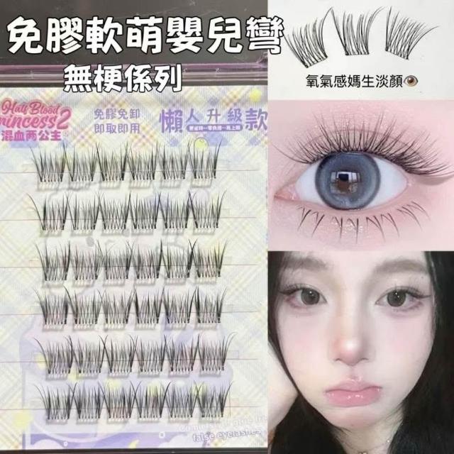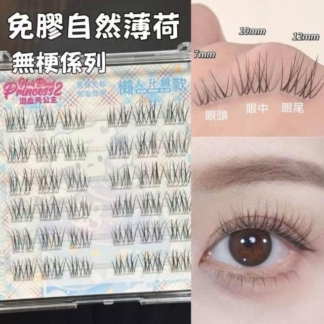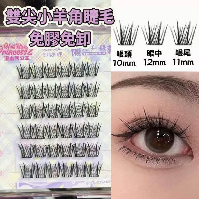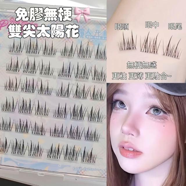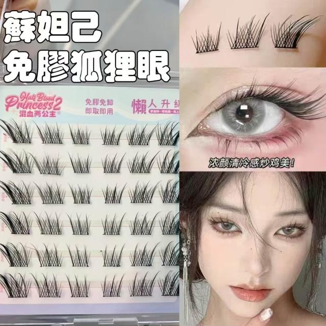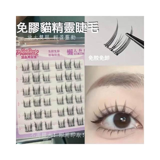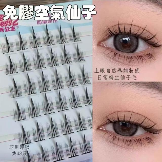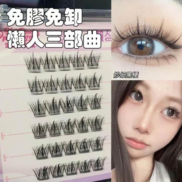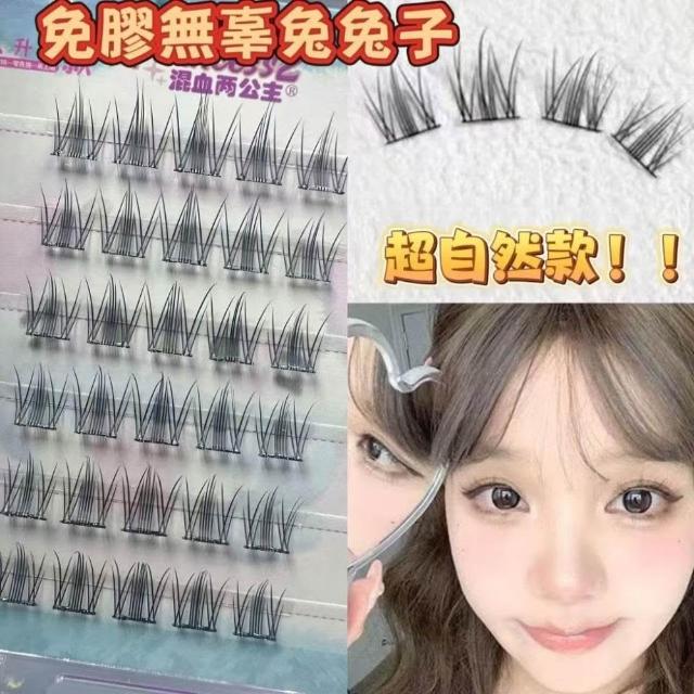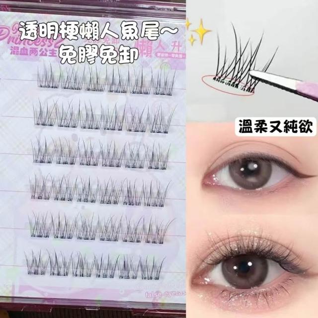 《台灣隔日到貨🚀》新品睫毛送膠水+夾子免膠假睫毛分段好漫畵濃密睫毛速妝透明梗超自然自粘假睫毛仙子毛魚尾下睫毛單根嫁接