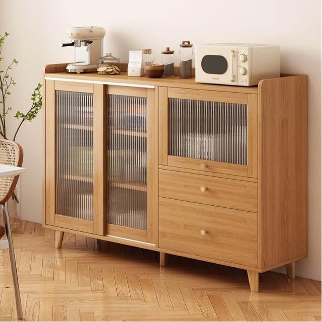 餐邊櫃客廳儲物櫃原木色家用收納櫃茶水櫃靠牆一體置物鬥櫃備餐櫃
