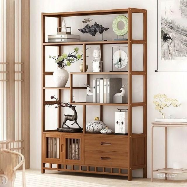 新中式博古架櫃子客廳擺放多寶閣展示櫃辦公室置物架茶葉展示架竹