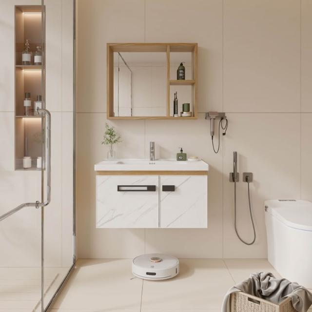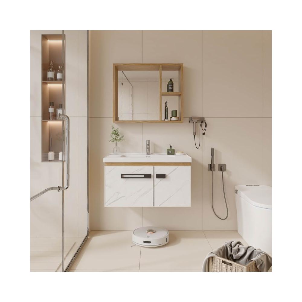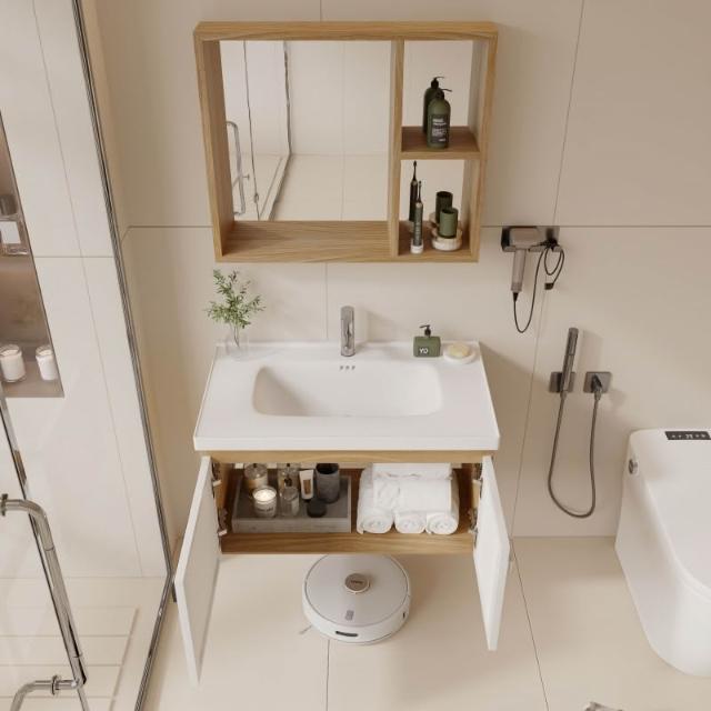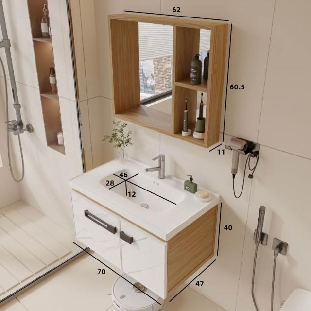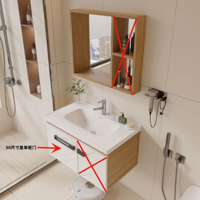 奶油風塑鋼浴室櫃組合酒店一體陶瓷盆衛生間洗手臺洗漱臺洗手盆櫃