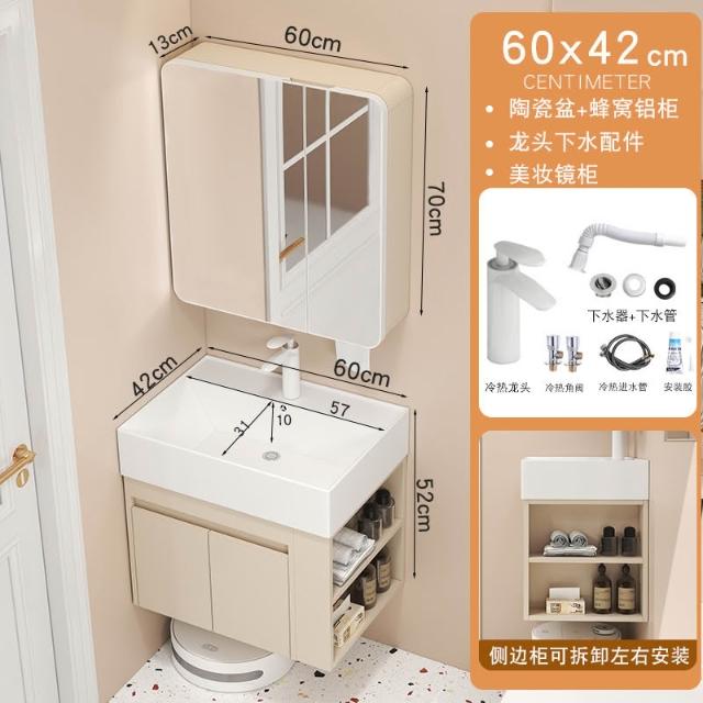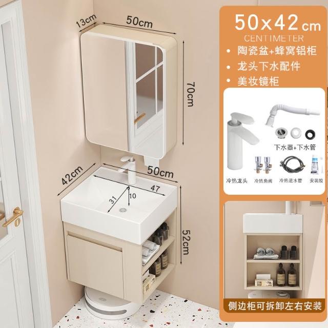 家用小戶型蜂窩鋁浴室櫃超窄洗手盆洗臉盆衛生間洗漱臺側邊收納櫃