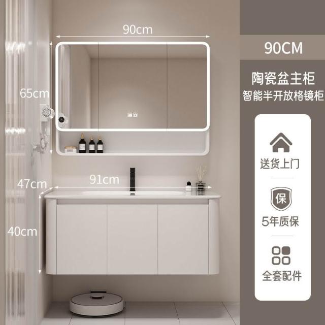 奶油風太空鋁圓角浴室櫃陶瓷一體洗手盆櫃組合洗漱臺洗臉池