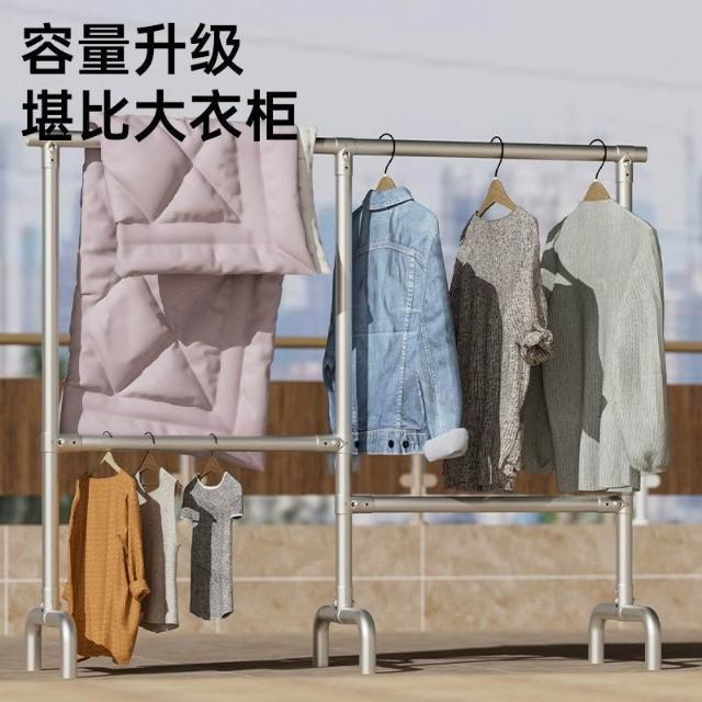 鋼管晾衣架折疊落地家用陽臺掛衣服室外戶外防風雙杆曬被子晾衣杆