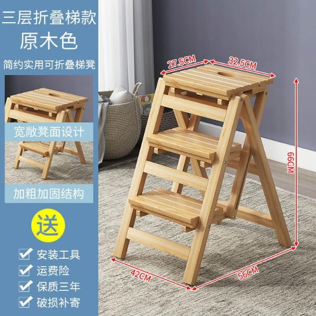 多功能兩用凳子梯椅家用實木免安裝梯凳折疊臺階腳踏四步登高梯子