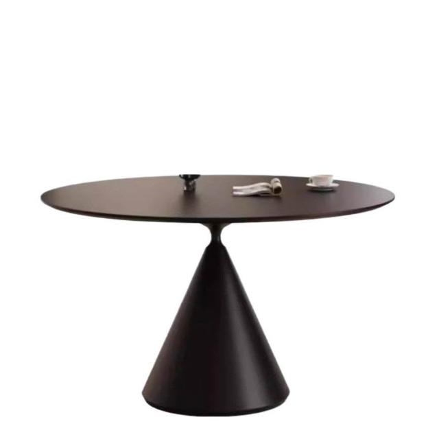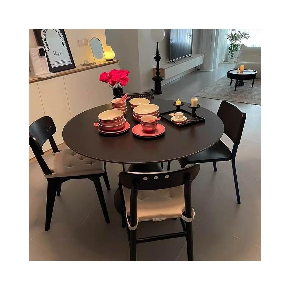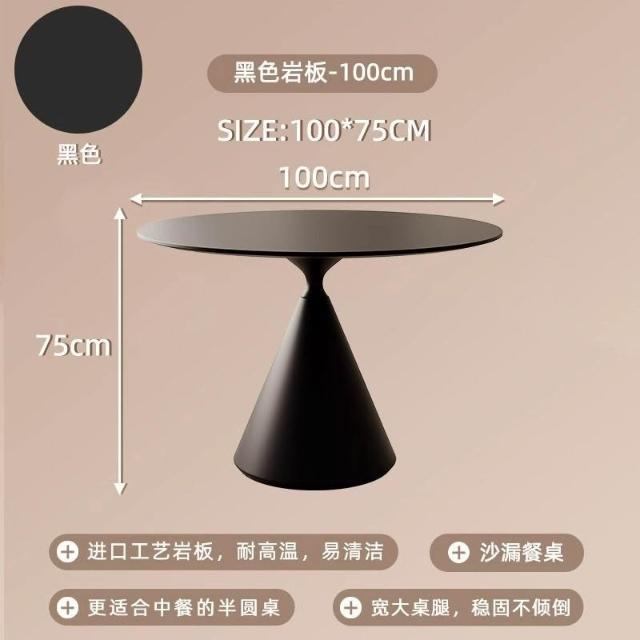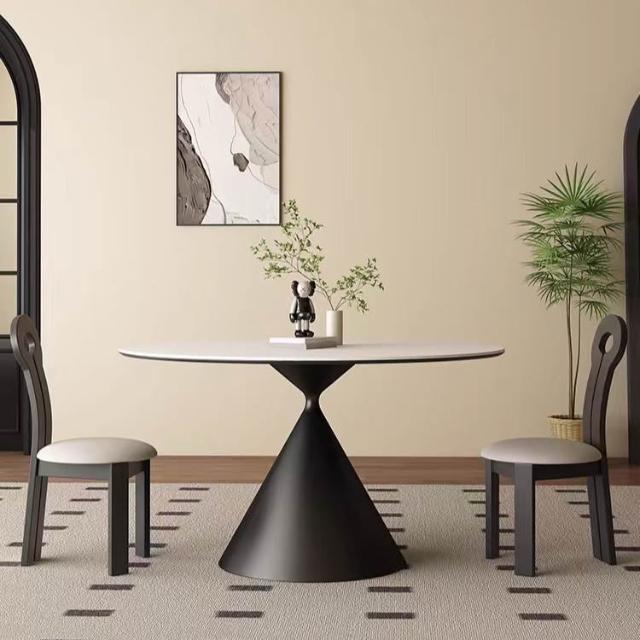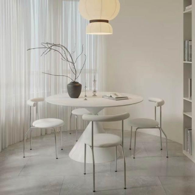 法式奶油風岩板圓形餐桌家居現代簡約型圓桌小戶型家用飯桌椅組合